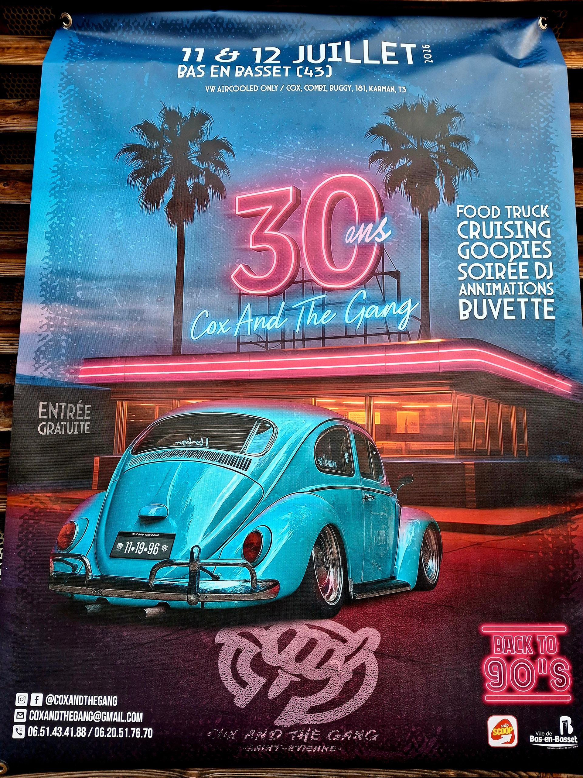 Les organisateurs du meeting combi cox etc vw d’Aurec puis Bas en Basset organisent le meeting les 11 et 12 Juillet. À Bas. Le même lieu que l’an dernier. Voici l’affiche.
