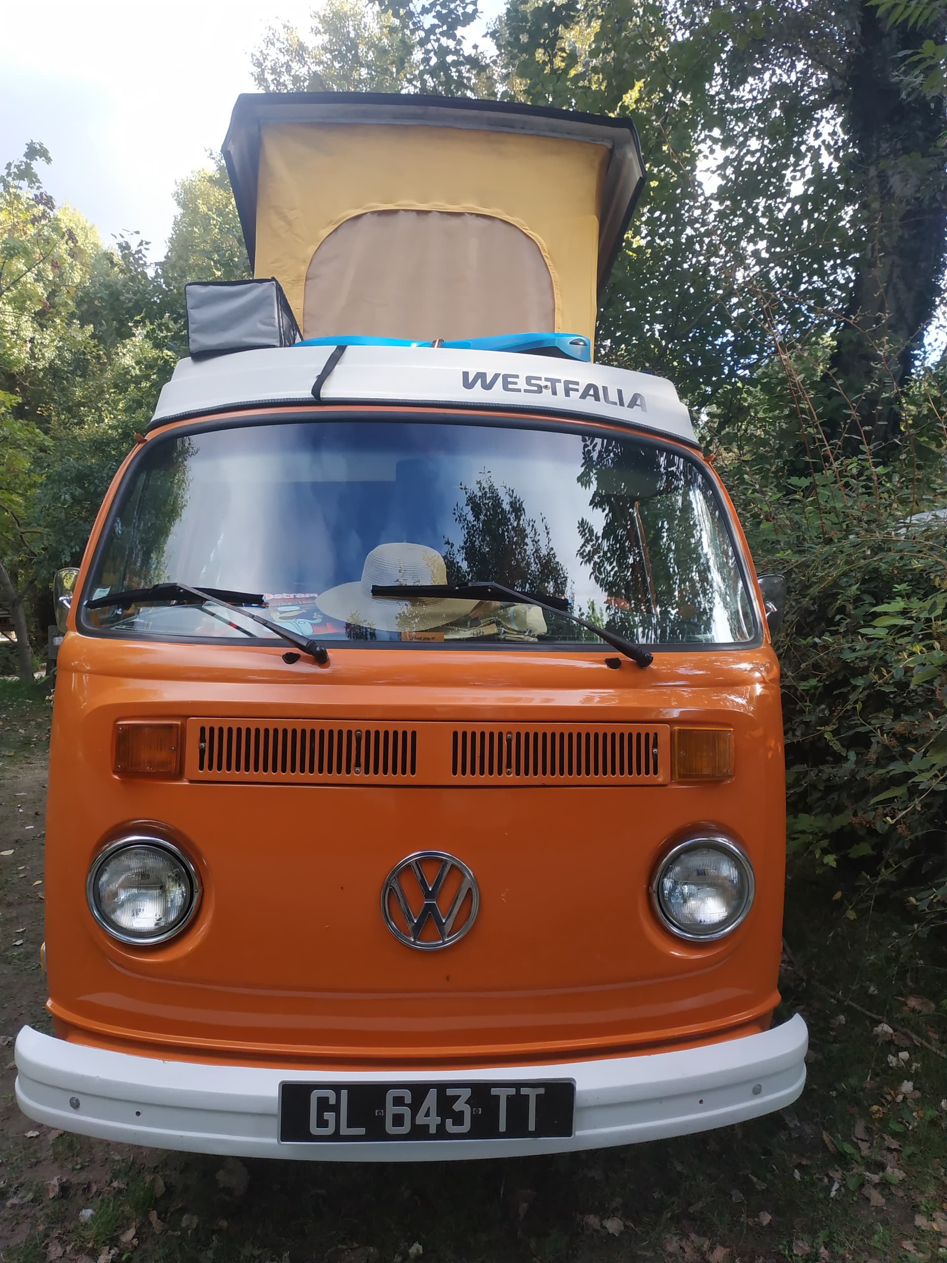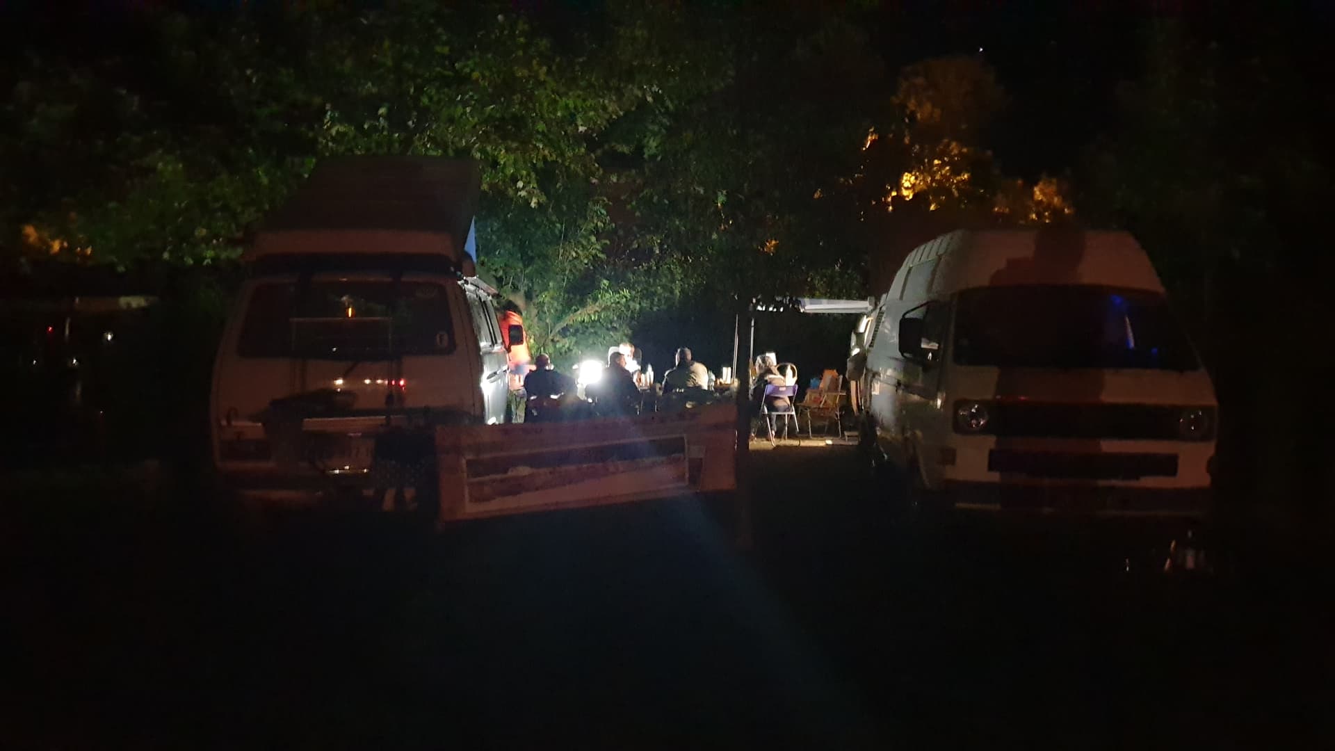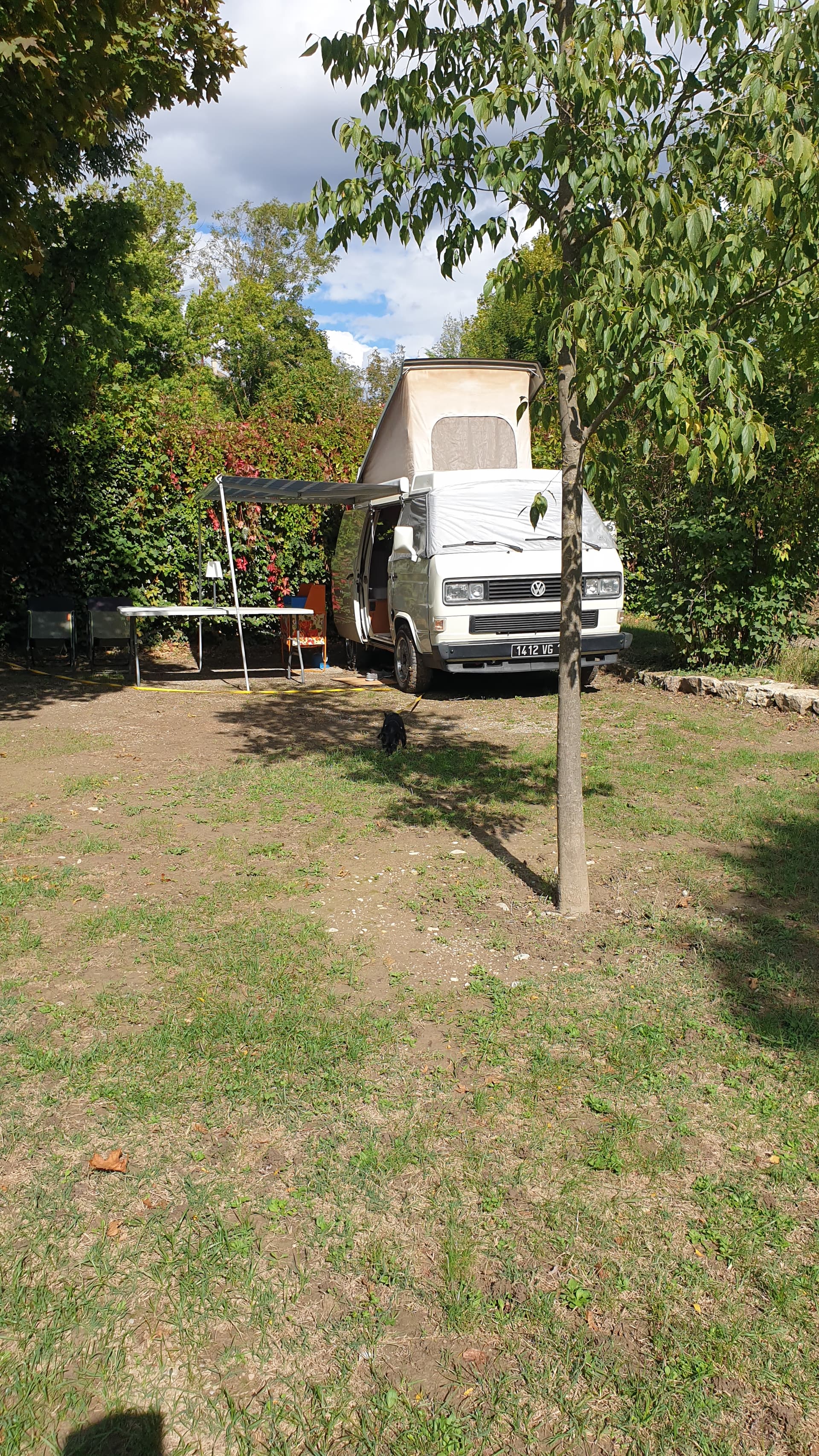 Première veillée vwcamper sous les arbres de ce superbe camping. Les exposants s’installent.