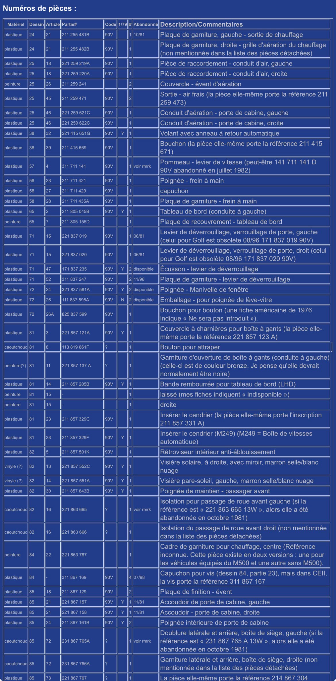 La liste des pièces sur un champagne avec le code 90v marron tu y trouveras la planche de bord
