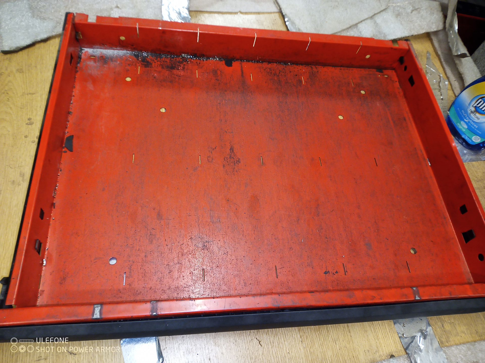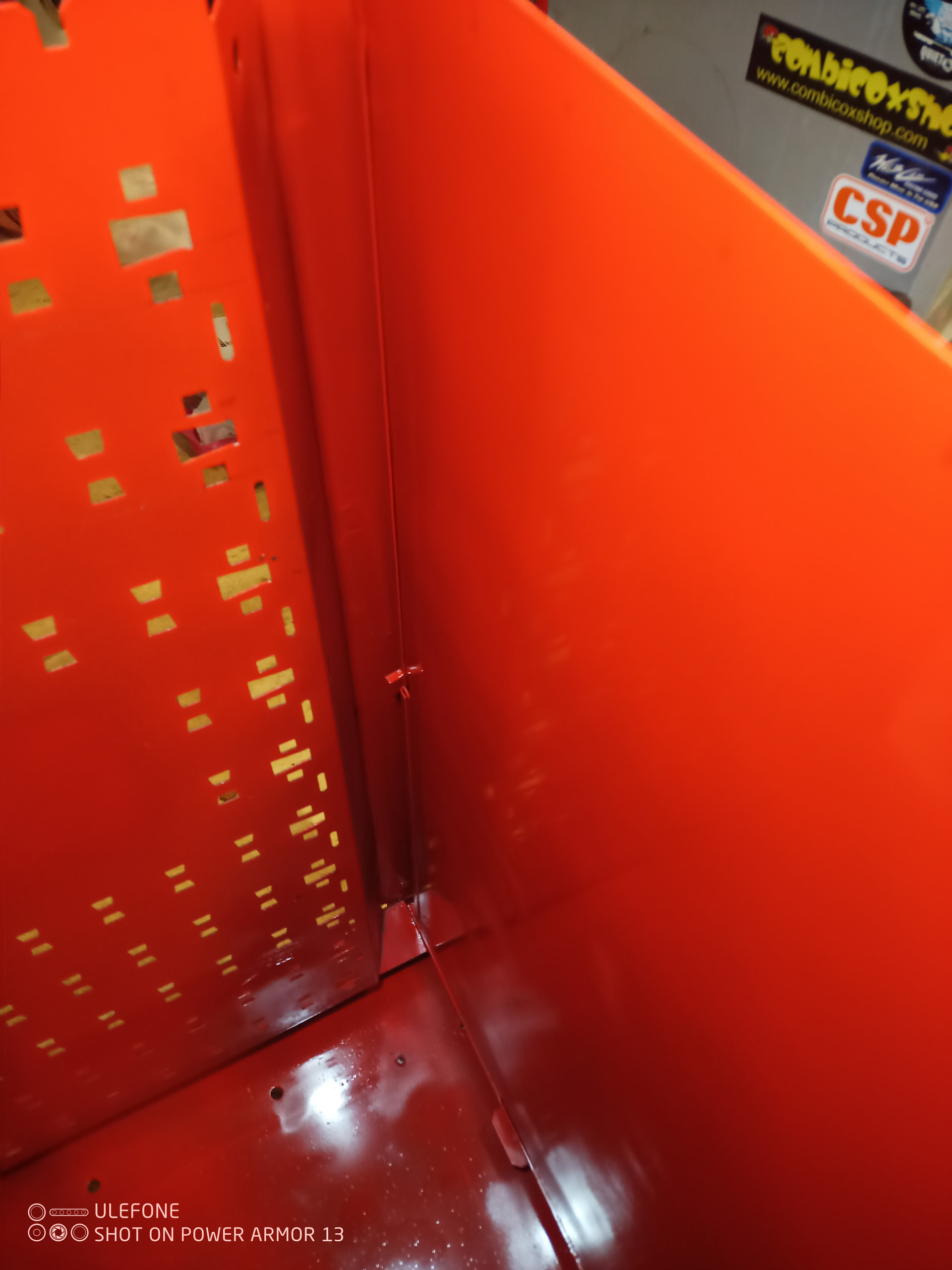 J’avais fait coupé au laser une tôle, fait plier, que j’ai peint époxy au boulot.