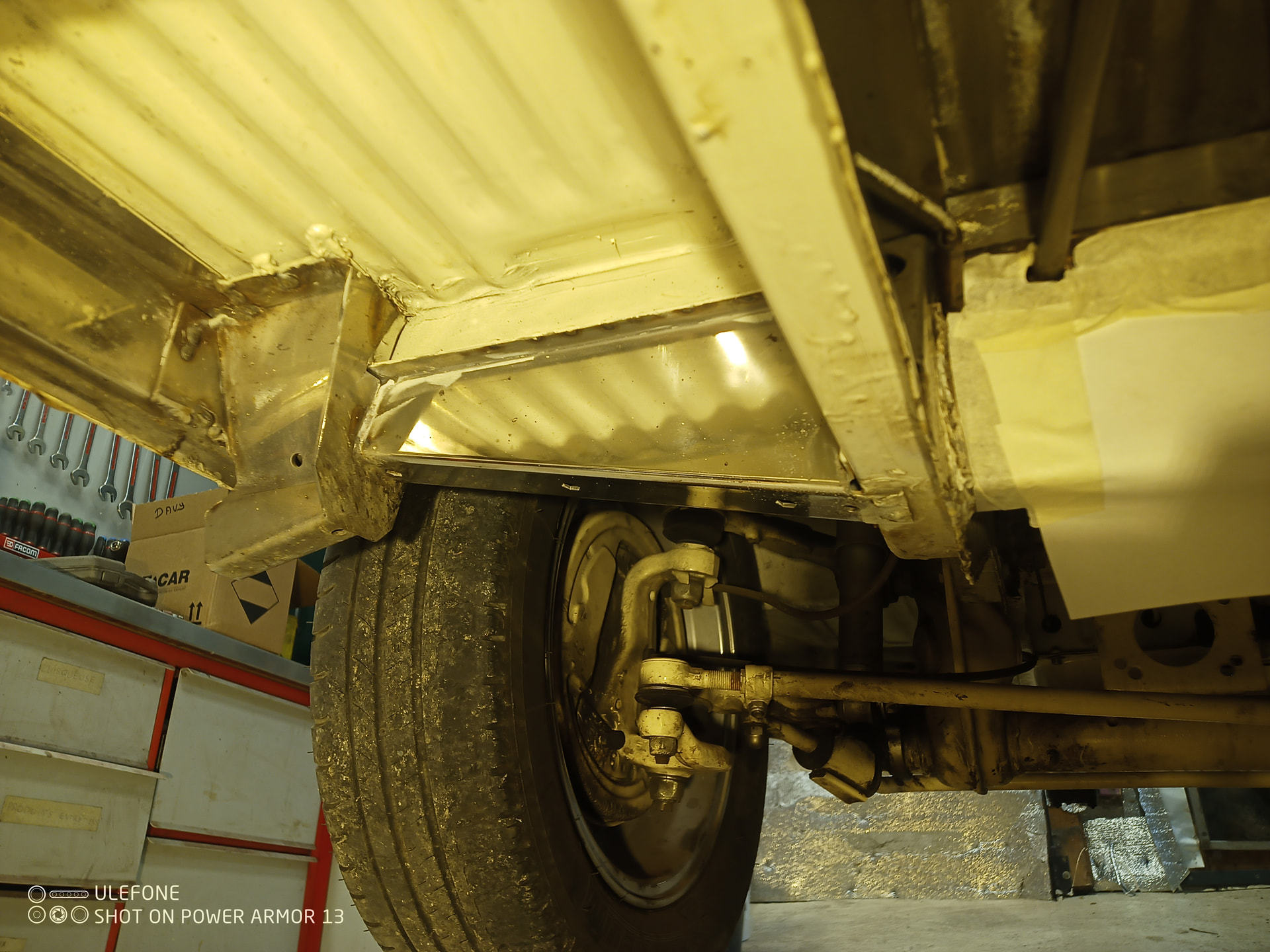 Je veux surtout protéger les zones qui seront inaccessibles quand j’aurais soudé la traverse arrière et mes renforts de fixation de boite.