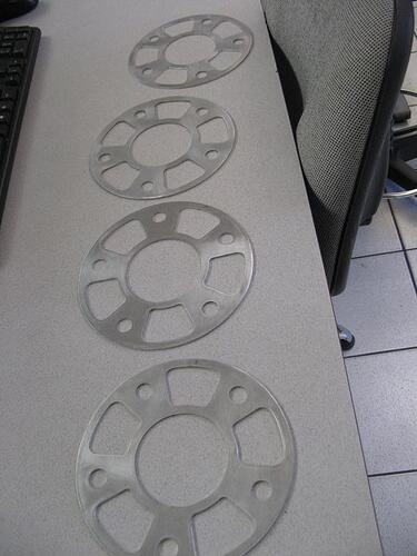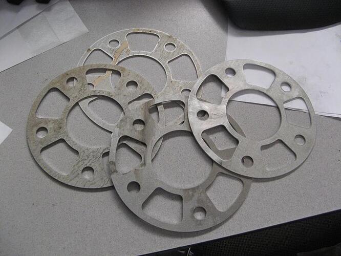 mes élargisseurs de voie, destinés pour l’avant, sans ces 2mm, l’étrier porsche touche l’interieur de la jante (en 14 pouces)