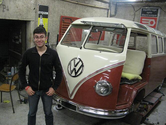 mon petit stagiaire Maxence 16 ans, en plein boulot de ponçage, moi au grain 360, lui au 500.