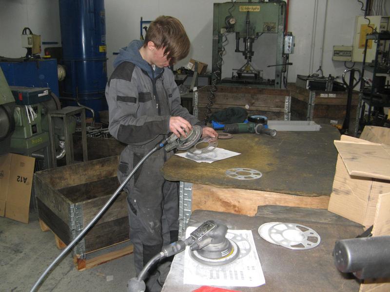 Alors je lui donne des cours de tournage, de soudure, de ponçage, il est tout content.