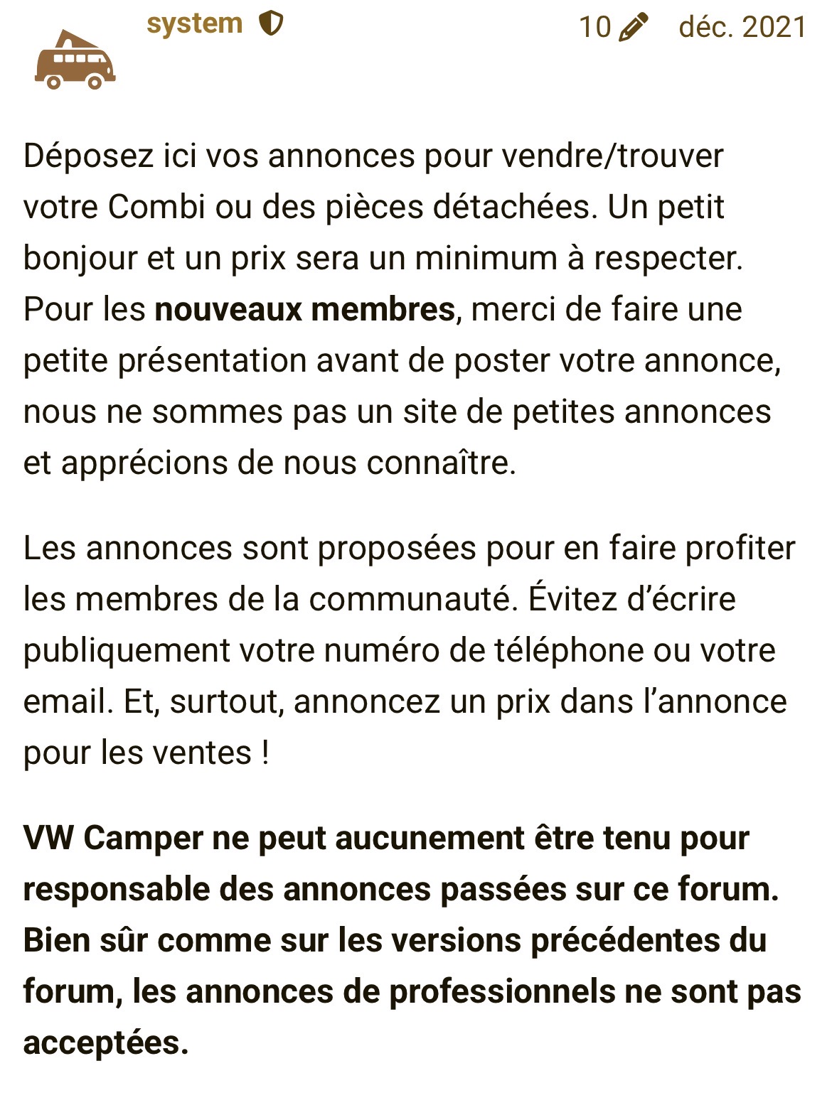 bonjour je suis propriétaire d’un petit combi t1 de 1968 que j’ai acheté il y a 2 ans est que je souhaite vendre . je suis dans la région bourgogne et j’ai voulu me faire plaisir avec cet achat car j’aime les anciens véhicules (en tant qu’amateur) . lorsque j’ai trouvé mon combi j’étais plutot émerveillé de concrétiser un rève qui a fini par etre un” cauchemar”