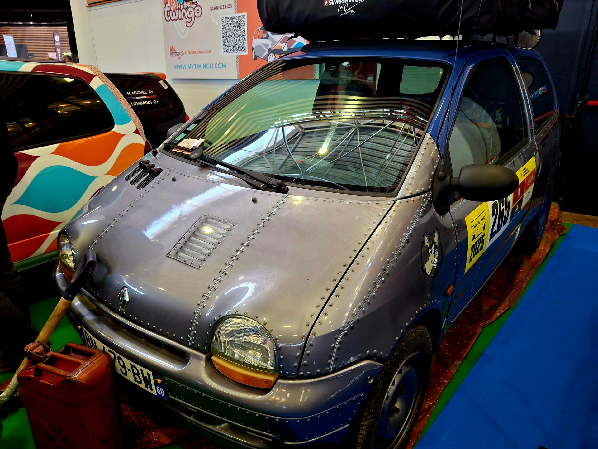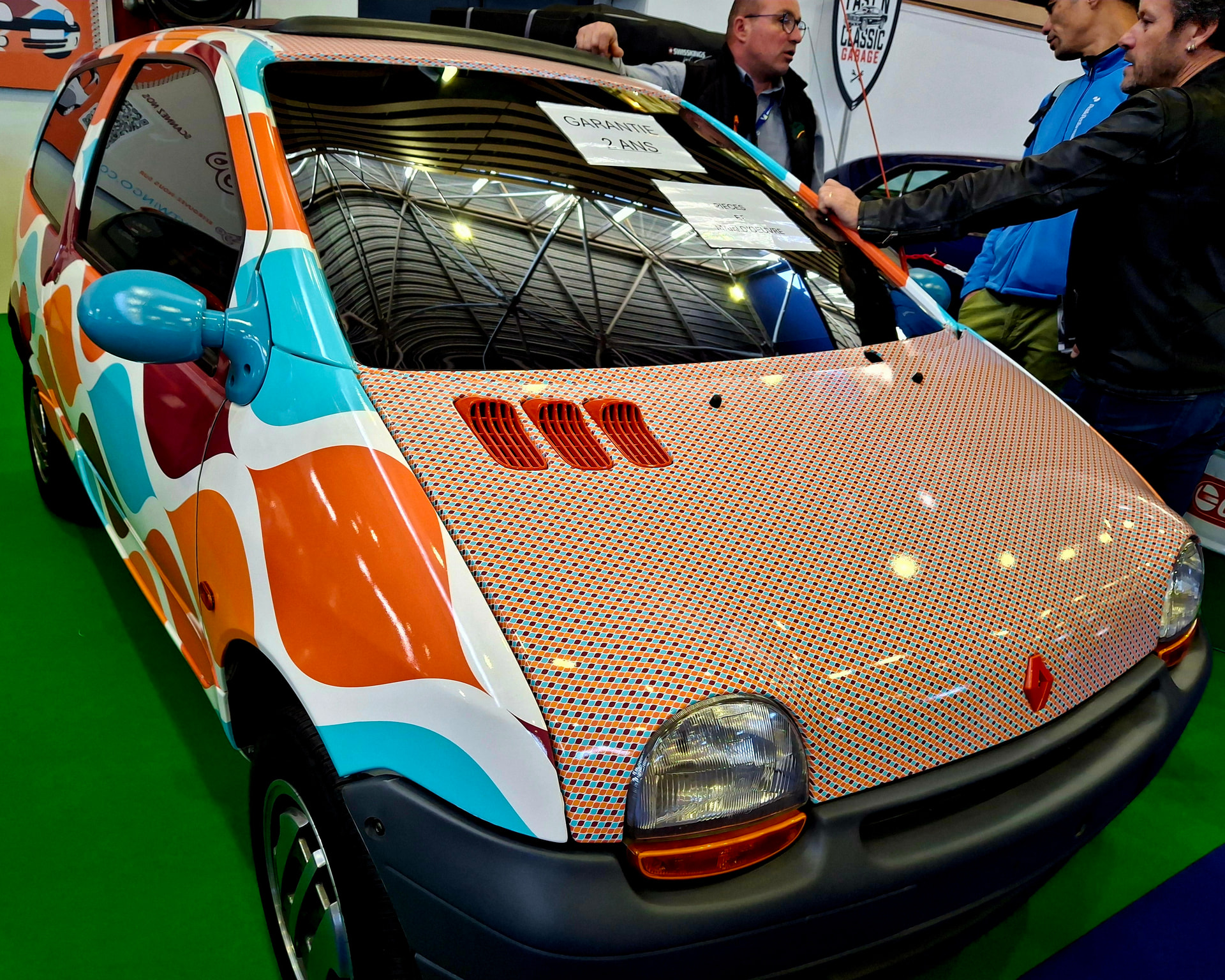 Twingo cover pop. Au dessus. Au dessous: peinture bluffante à l’aérographe.
