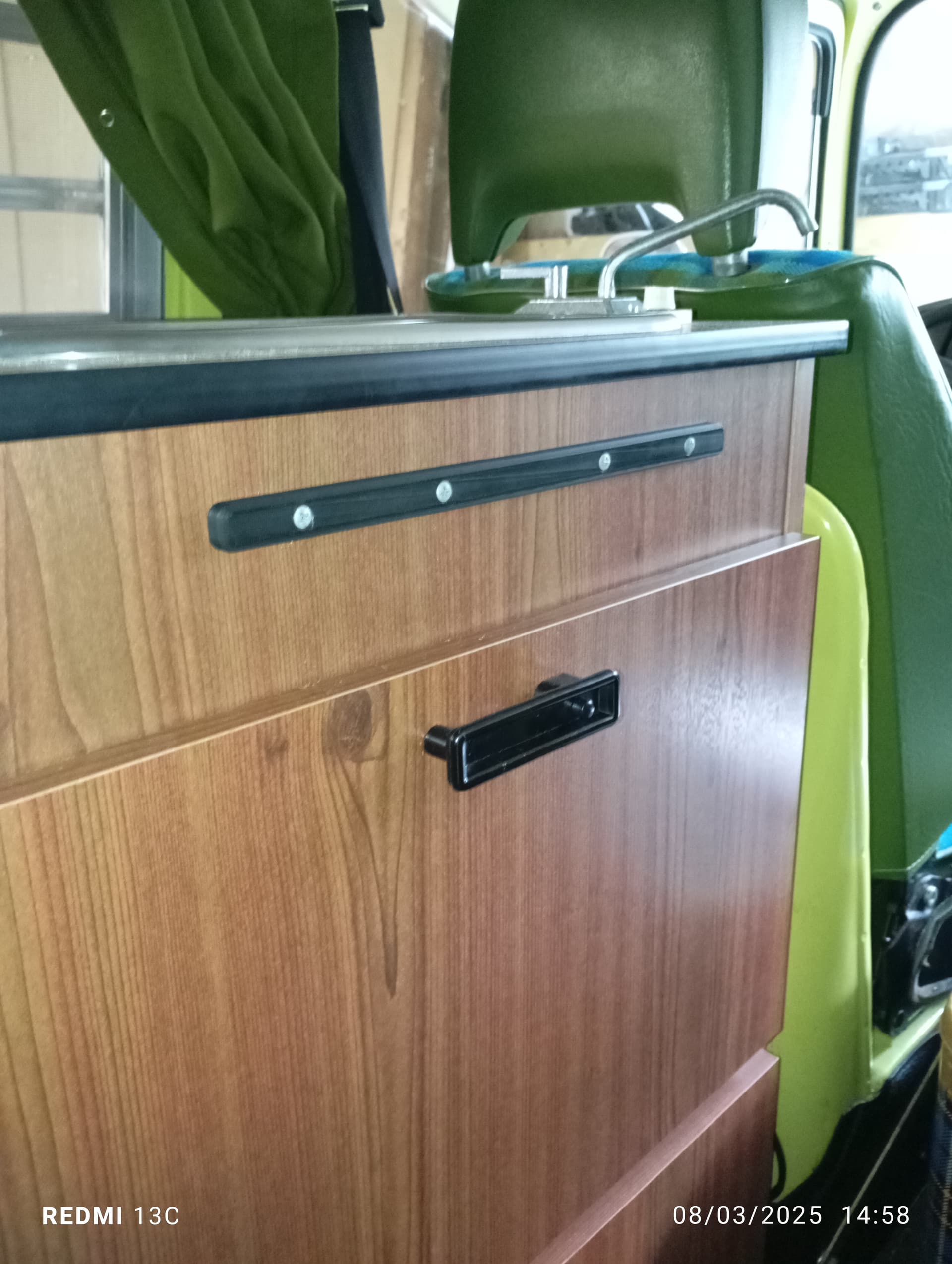 Sur le t2a, le meuble haut est visé a droite, par une patte rivetée sur la carrosserie, à gauche par un boulon qui traverse la penderie, et derrière par 5 vis, du coup va pas tomber le meuble