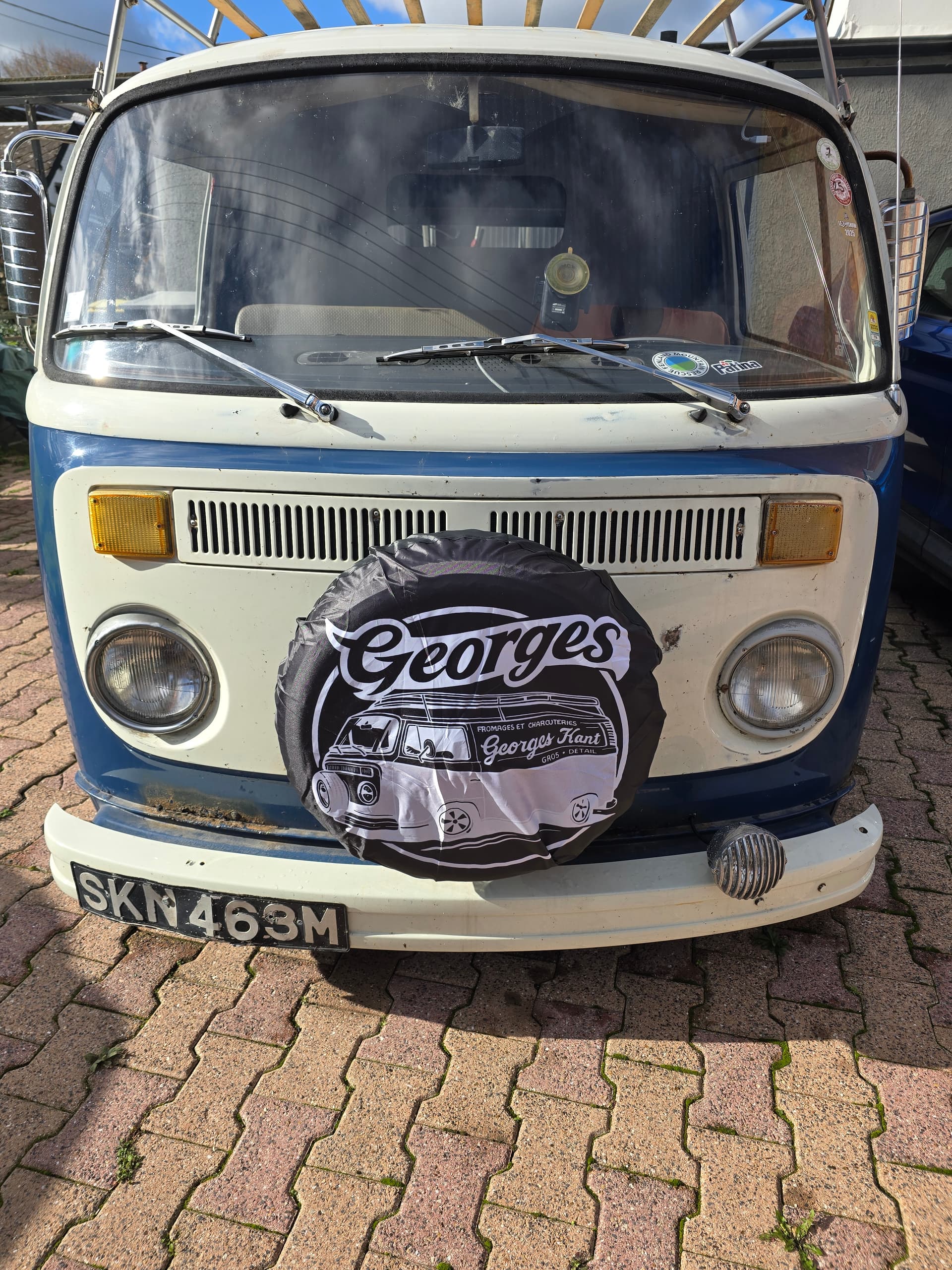 J’ai passé commande d’une housse personnalisée pour le pneu de secours. Ça ne coûtait pas grand-chose (une dizaine d’euros). Je ne m’attendais pas à grand-chose, et au final, ce n’est pas terrible (trop grand, j’ai pourtant bien commandé du 14 pouces). Dommage, car à la bonne taille, ça aurait pu être sympa.