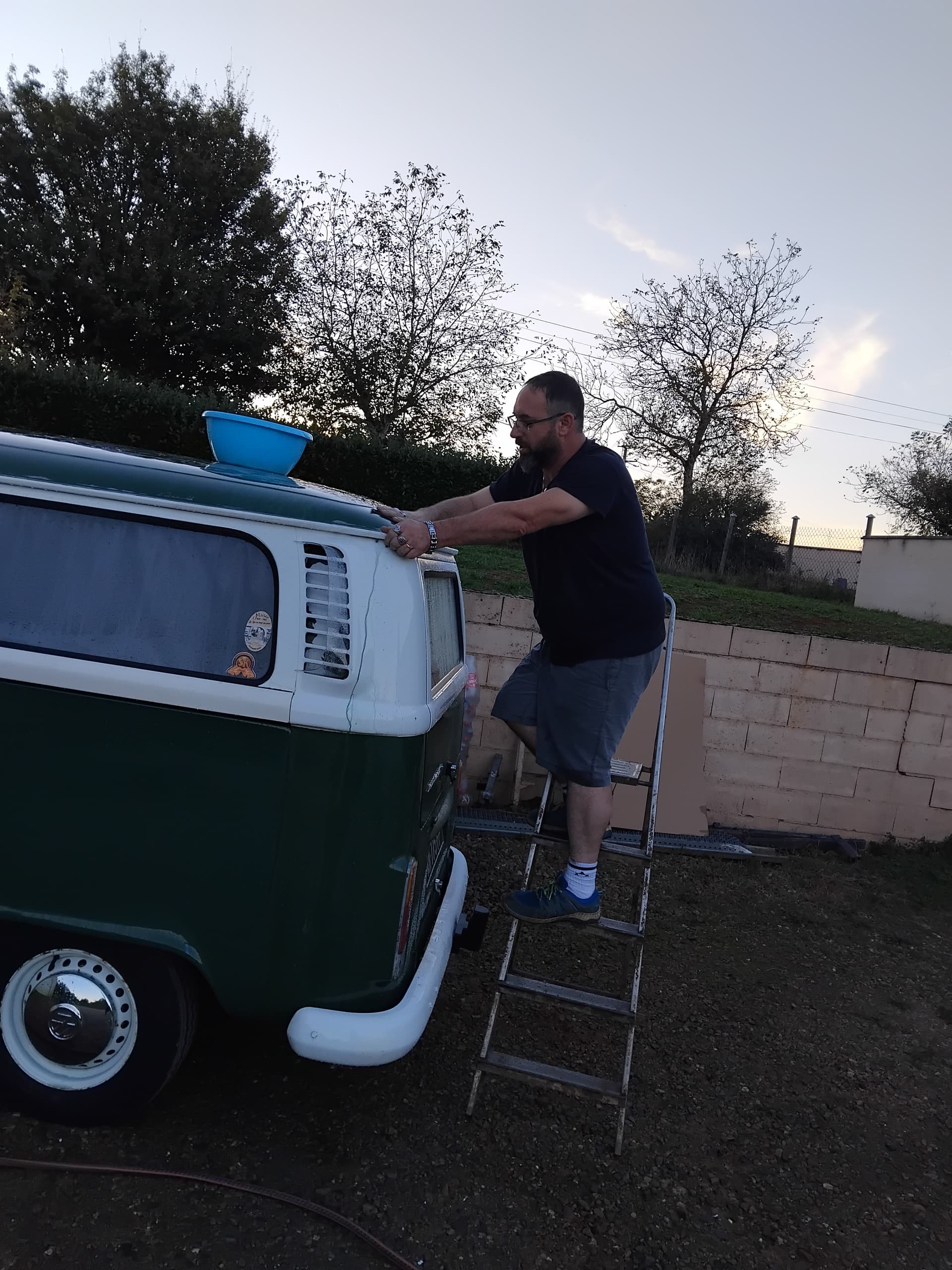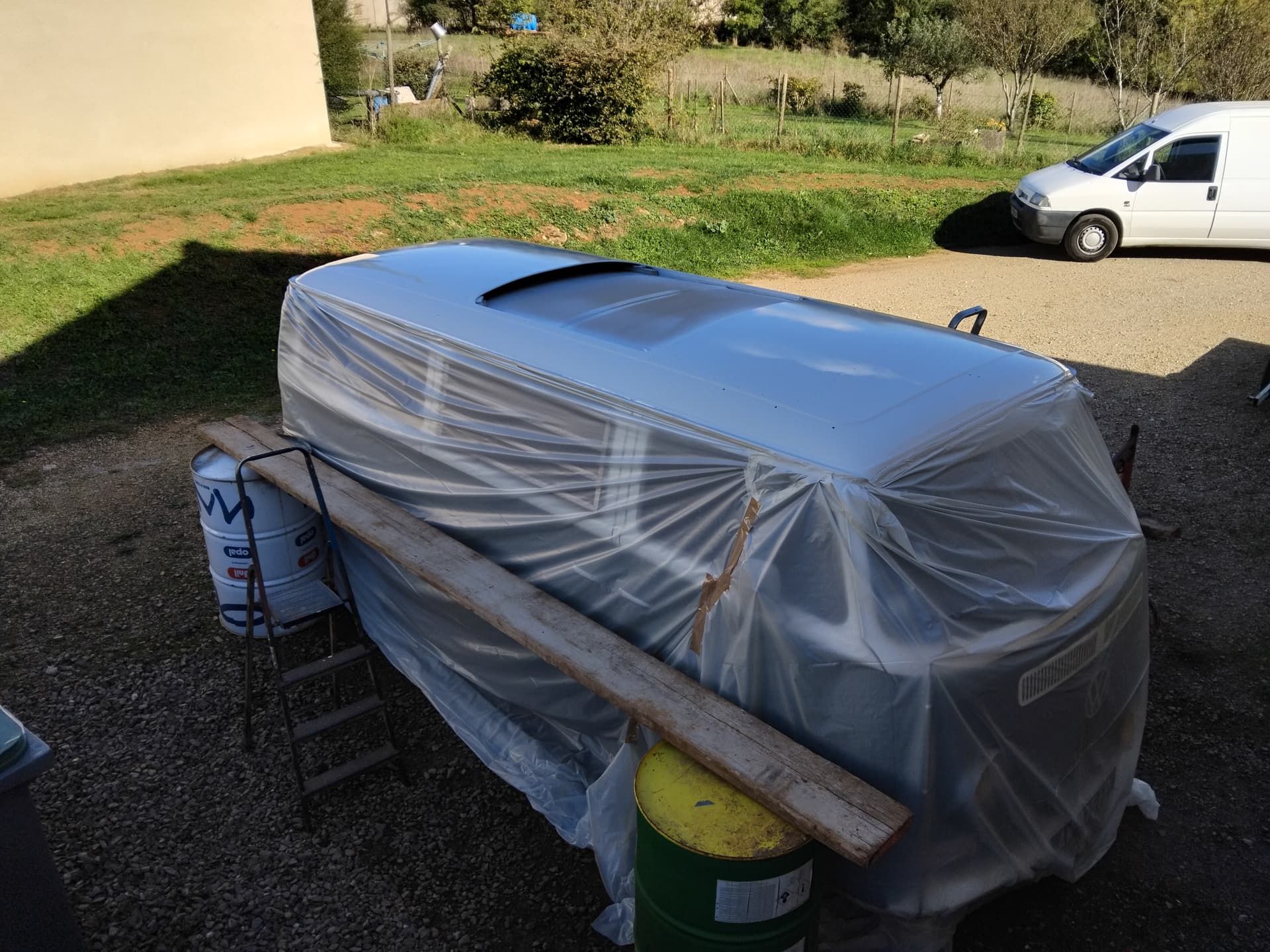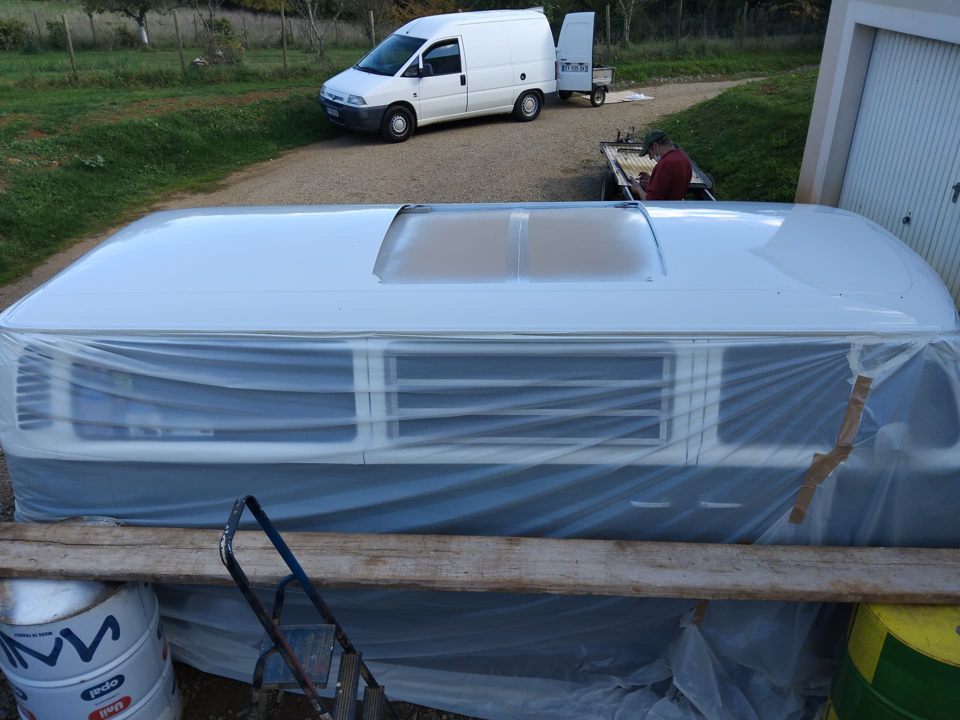La saison ce terminant on va attaquer un bout de restauration…pour le moment c est le toit la priorité , donc on enlève le toit en fibre , et attaquer le ponçage…