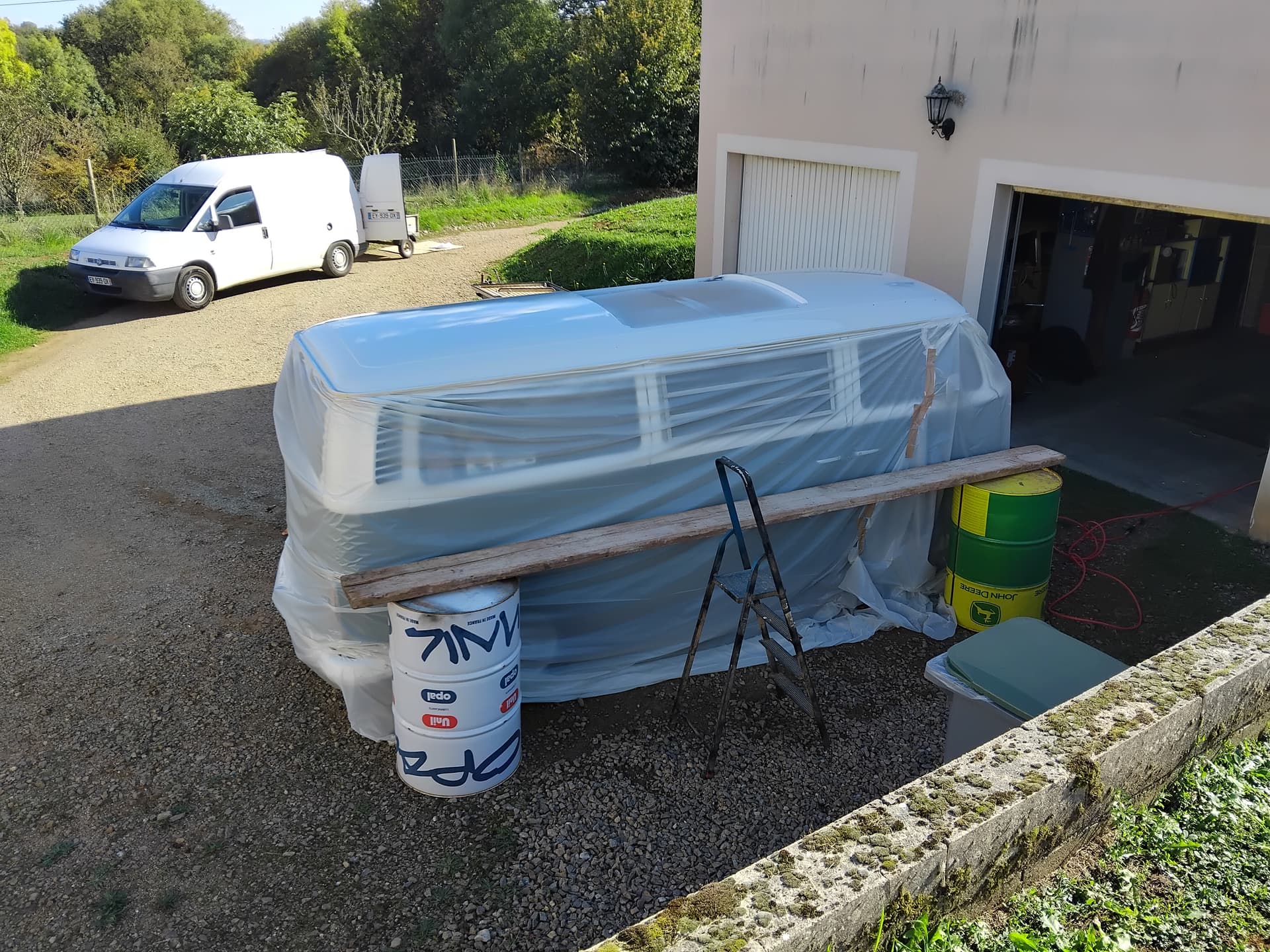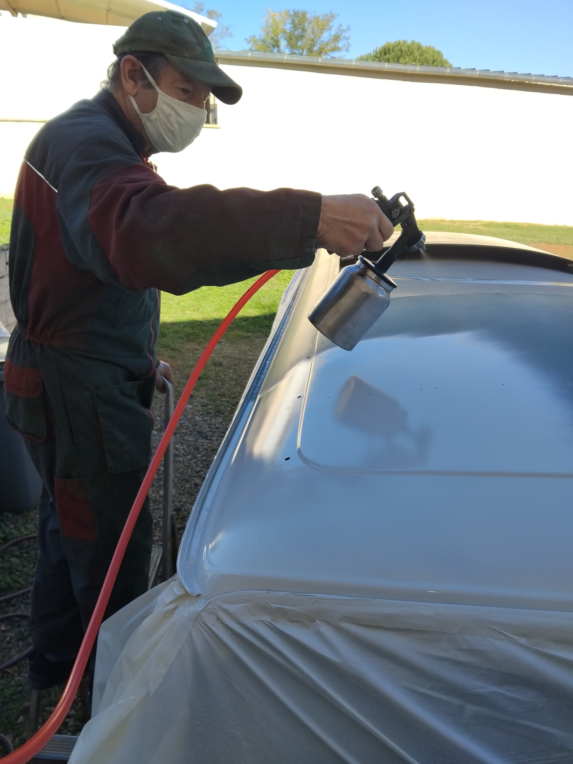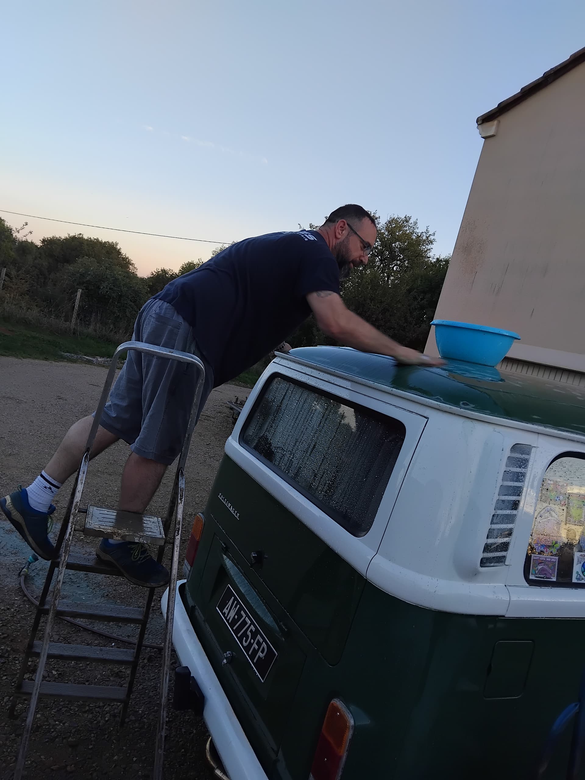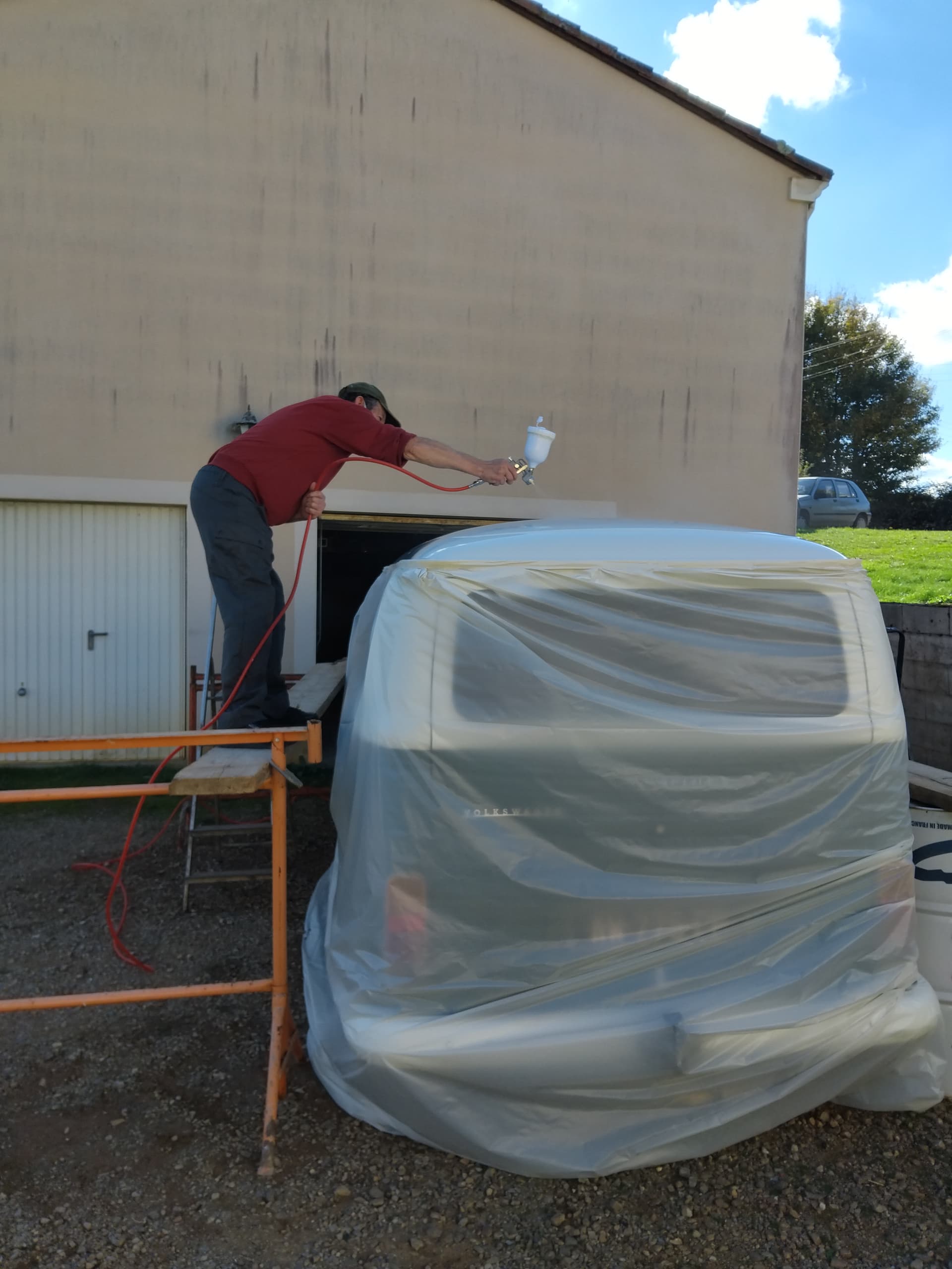 La saison ce terminant on va attaquer un bout de restauration…pour le moment c est le toit la priorité , donc on enlève le toit en fibre , et attaquer le ponçage…
