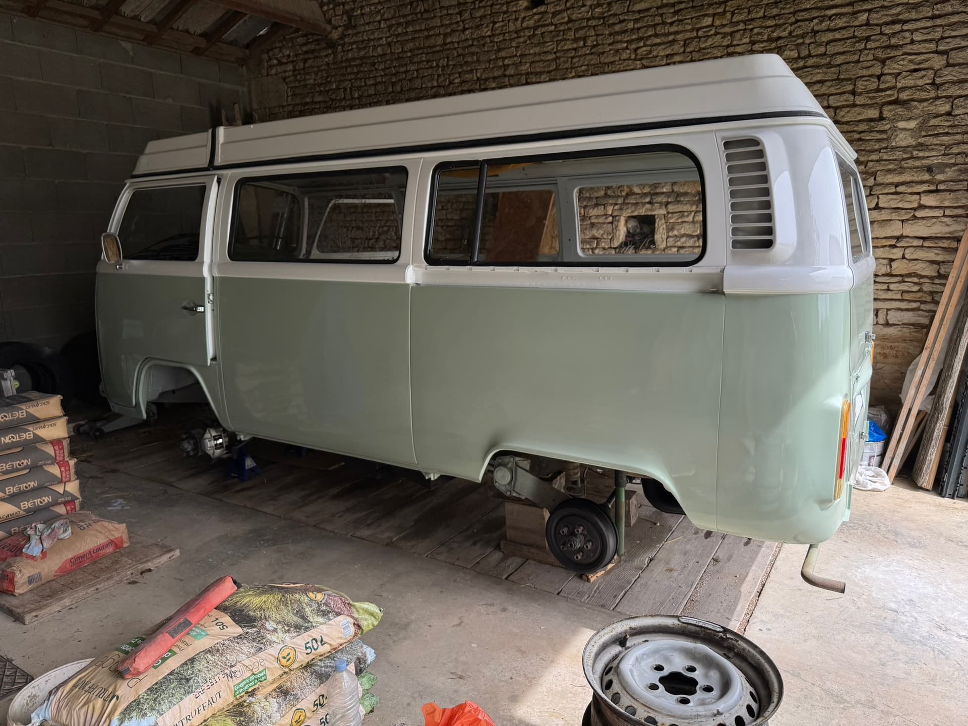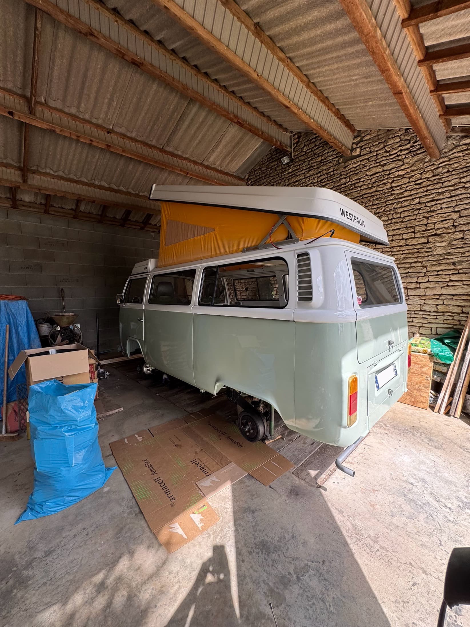Allez on avance ! Le combi est en cabine et vient de recevoir son voile de vernis ! ![]()