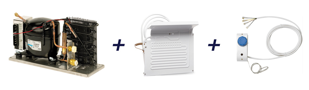 - passage d’un nouveau faisceau électrique sous le plancher pour venir alimenter le future frigo à compression. J’ai conservé le meuble d’origine avec sa glacière, je l’ai ré-isolé et installer un groupe à compression derrière le meuble avec son évaporateur qui fini dans la glacière, c’est ceci :