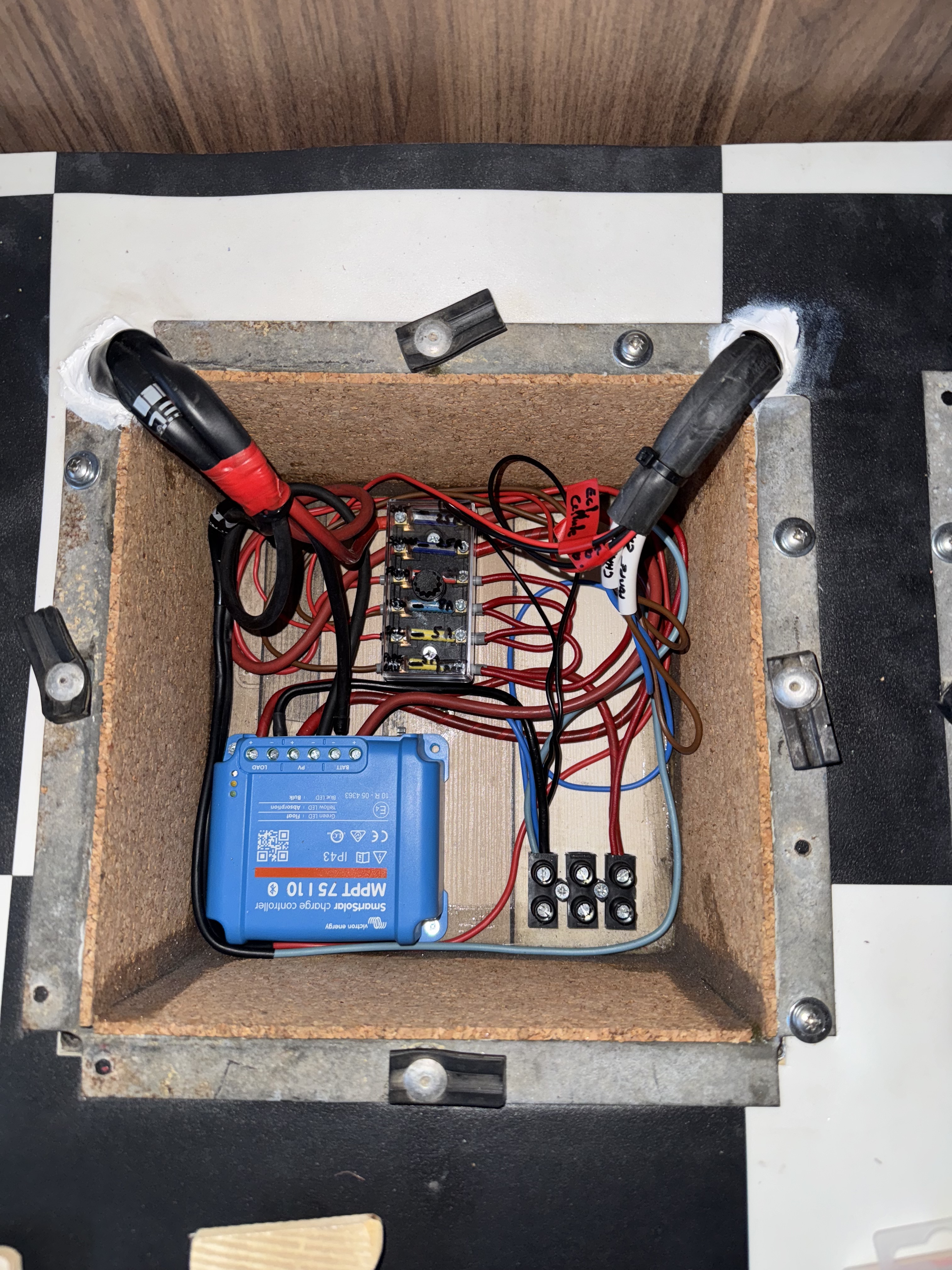 Côté remontage ça avance aussi, j’ai passé une journée à créer et passer le faisceau batterie auxiliaire et panneau solaire pour que tout arrive en cabine.
