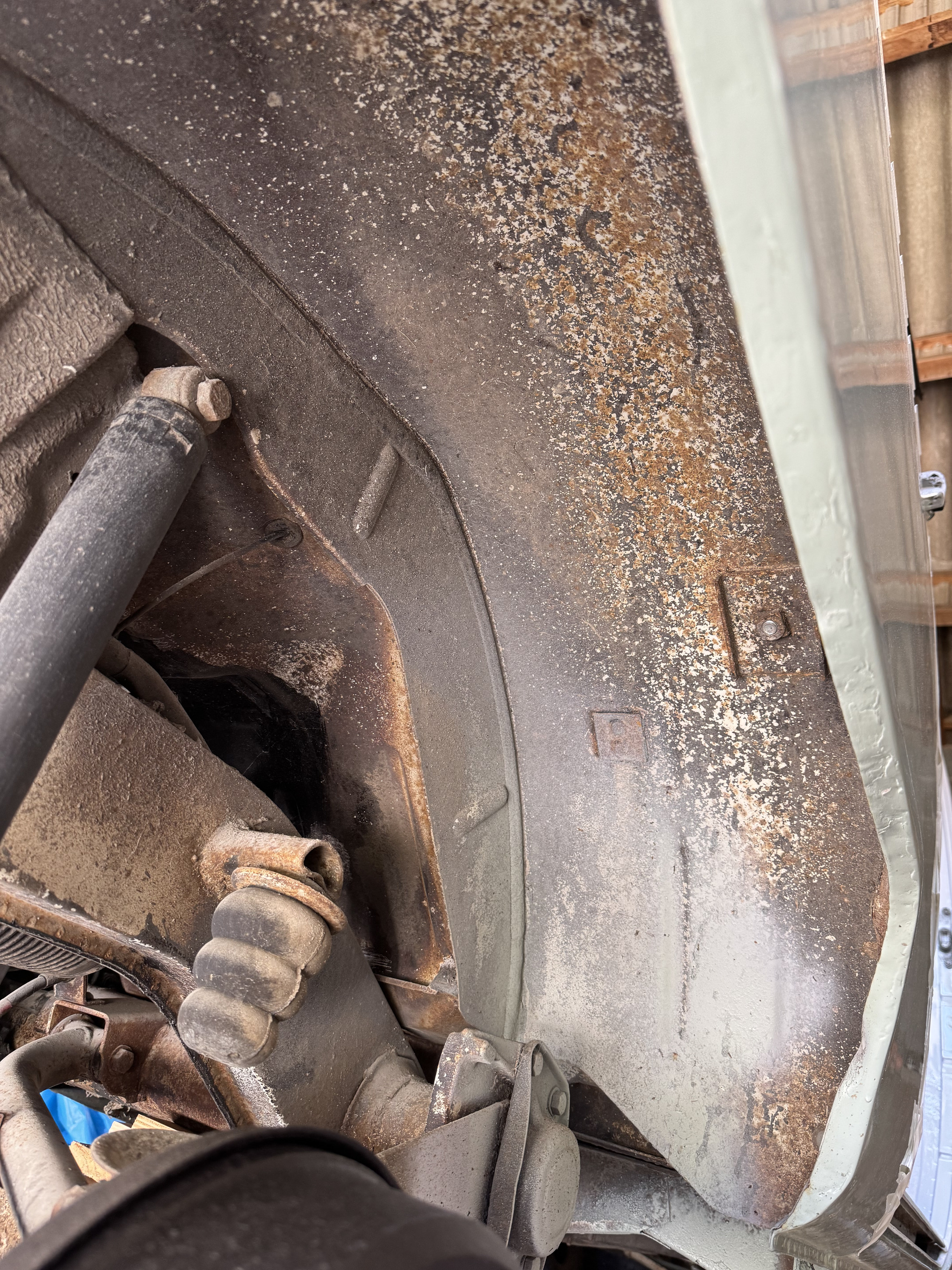 Et là mon nouveau job, reprise complètes des passages de roues arrières qui commencent à rouiller avec le temps… il faut dire que l’anti gravillon d’origine à quitter le navire depuis quelques temps…