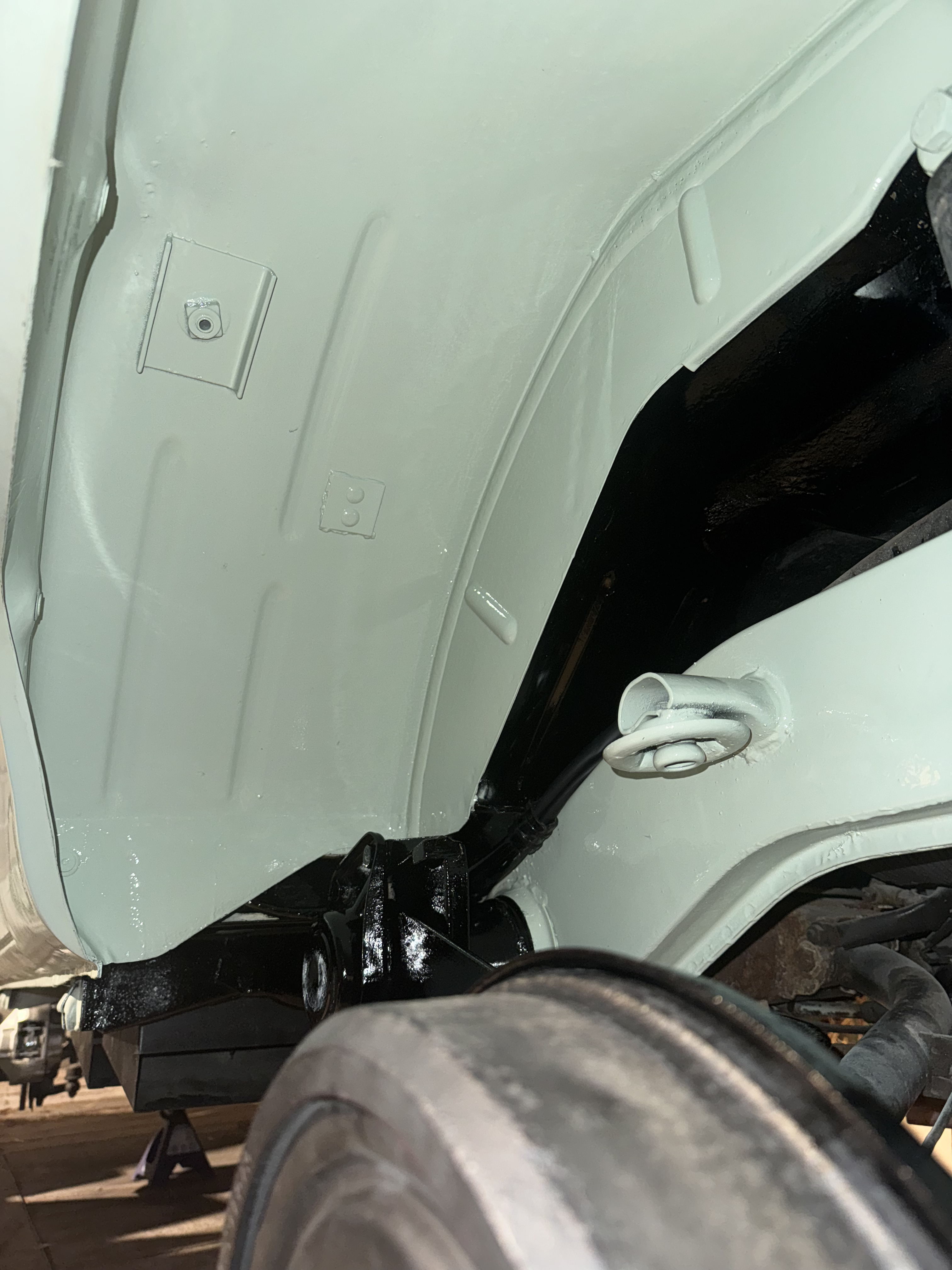 Les passages de roues arrières ont été traité comme prévu, j’ai appliqué le noir à châssis puis mis en finition de l’ensemble, c’est magnifique ![]()