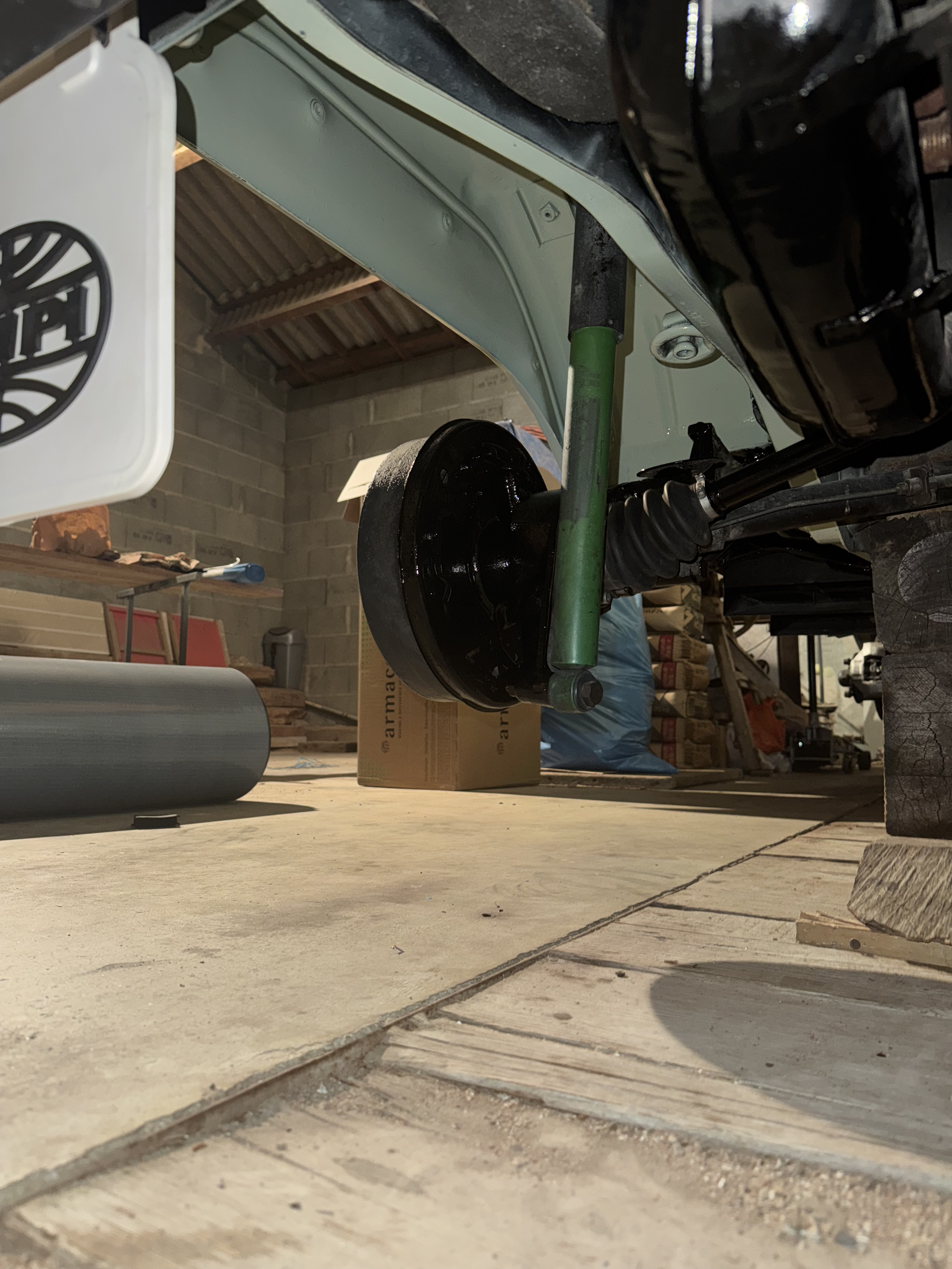 Quelques photos des avancées, je doit récupérer les jantes cette semaine, j’ai encore du boulot sur la remise à niveau du train avant (tous les soufflets à remplacer, les rotules sont ok, + graissage du train ) bref, j’ai hâte de rouler cet été ! :