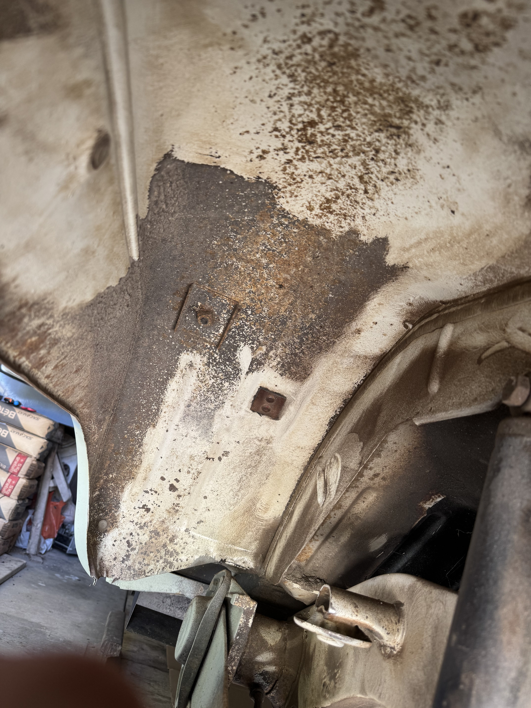Le boulot des travaux de sellerie en photo avec suppression de la corrosion à l’acide phosphatant sur les armatures et peinture antirouille :