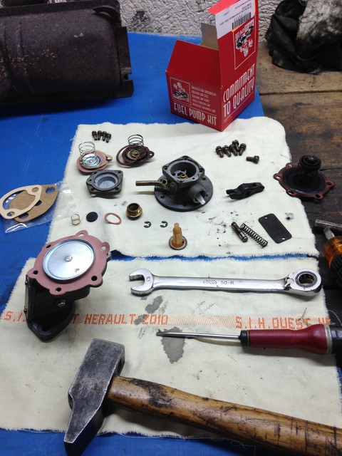 aujourd’hui du boulot sur le moteur, nettoyage et peinture, montage des bougies neuves,regulateur d’allumage, joints de pompe a essence,