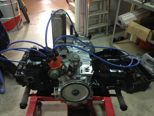 ok de toutes façons, il est pas encore branché…le moteur est en cours de remontage et vérification chez un connaisseur plus compétent que moi, et puis il y a assez de taf comme ça. je reste sur la base du 1641 fourni avec le combi il à l’air d’avoir été refait récemment, par contre il manquait pas mal de pièces, dont le pied d’alternateur qui n’est pas le bon. dés qu’il sera demarrable, on prend les compressions et si tout va bien je le remonte tel quel. il a quand même droit à tout l’allumage refait à neuf, joints de pompes à essence…