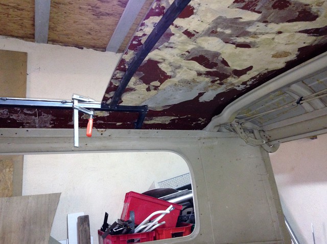 aujourd’hui, j’ai terminé la soudure des modifs pour le toit, et meulé le tout, ça avance doucement.
