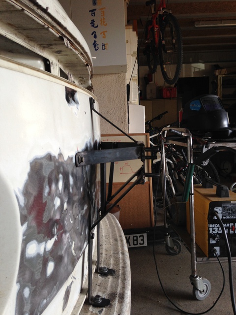 ça n’avance pas vite, et tout démontage devient vite galère, après avoir du couper à la meuleuse 2 des 4 boulons du train arrière, les écrous d’axe de moyeu aussi: indesserables!!!