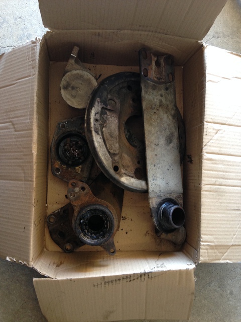 la flasque au milieu du carton est deja passé dans un bain d’electrolyse et elle va y retourner ainsi que toutes les pieces du train arriere puis viendra la peinture de tous les elements.