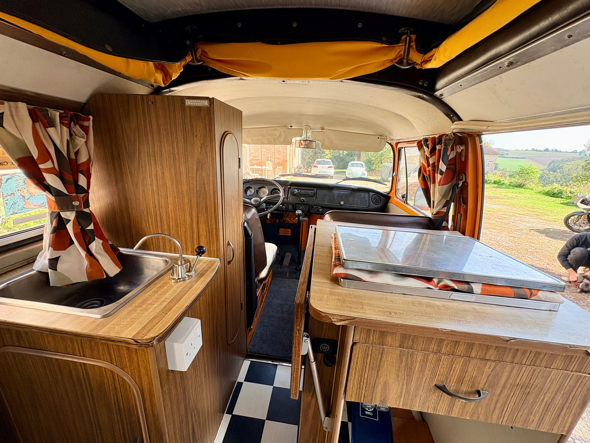 A ta place je commencerai pas un grand nettoyage intérieur, avec peux être les meubles dehors (moi y’avait des poils de chien partout dessous et autres découvertes ) avec remplacement du lino peux être .ça permet de découvrir un peu la bête et de vérifier qu’il n’y ait pas de mauvaises surprises sur le plancher. Après un petit coup sur les meubles, et un gros nettoyage/ polish extérieur pour finir de tomber amoureux