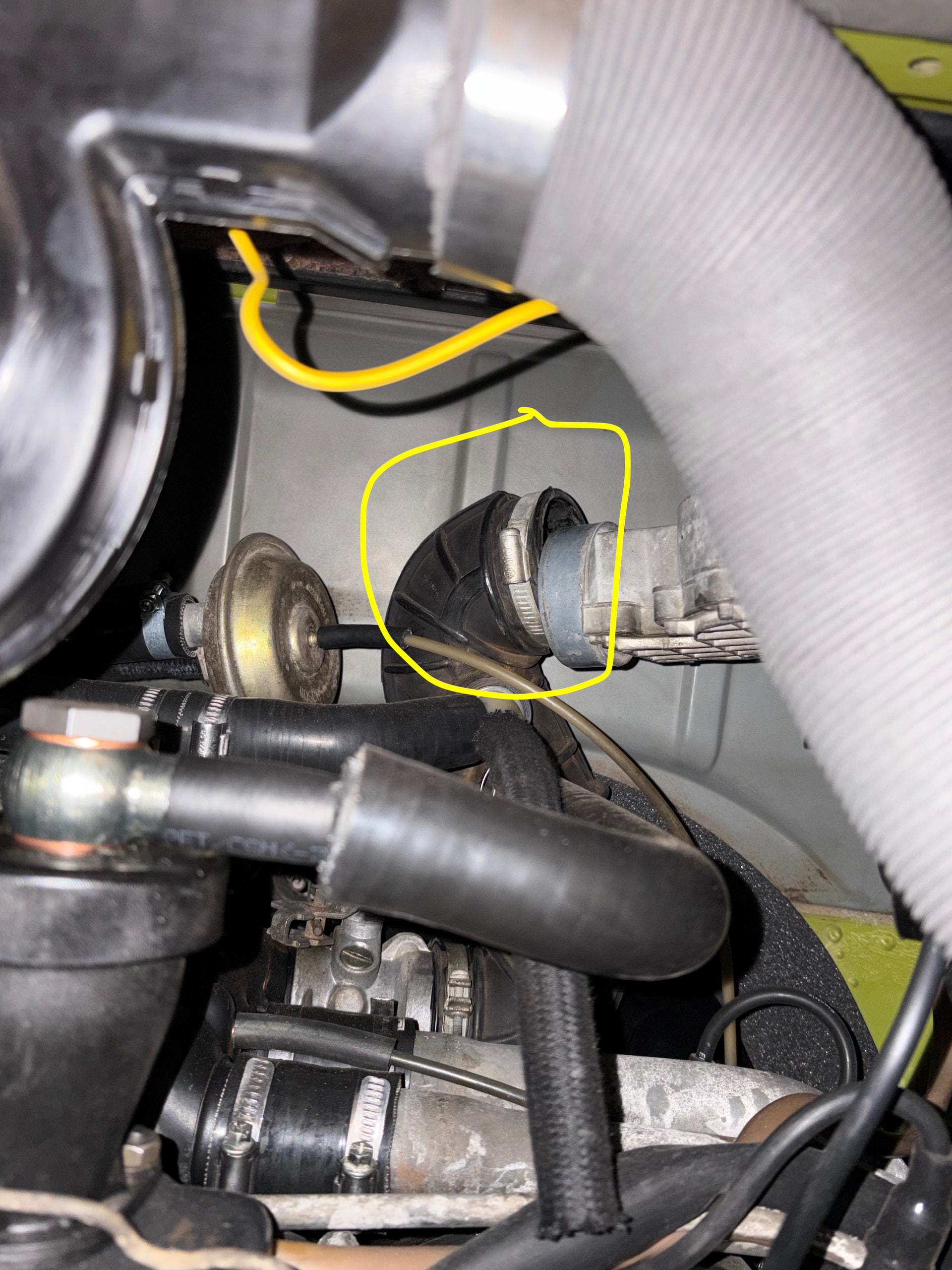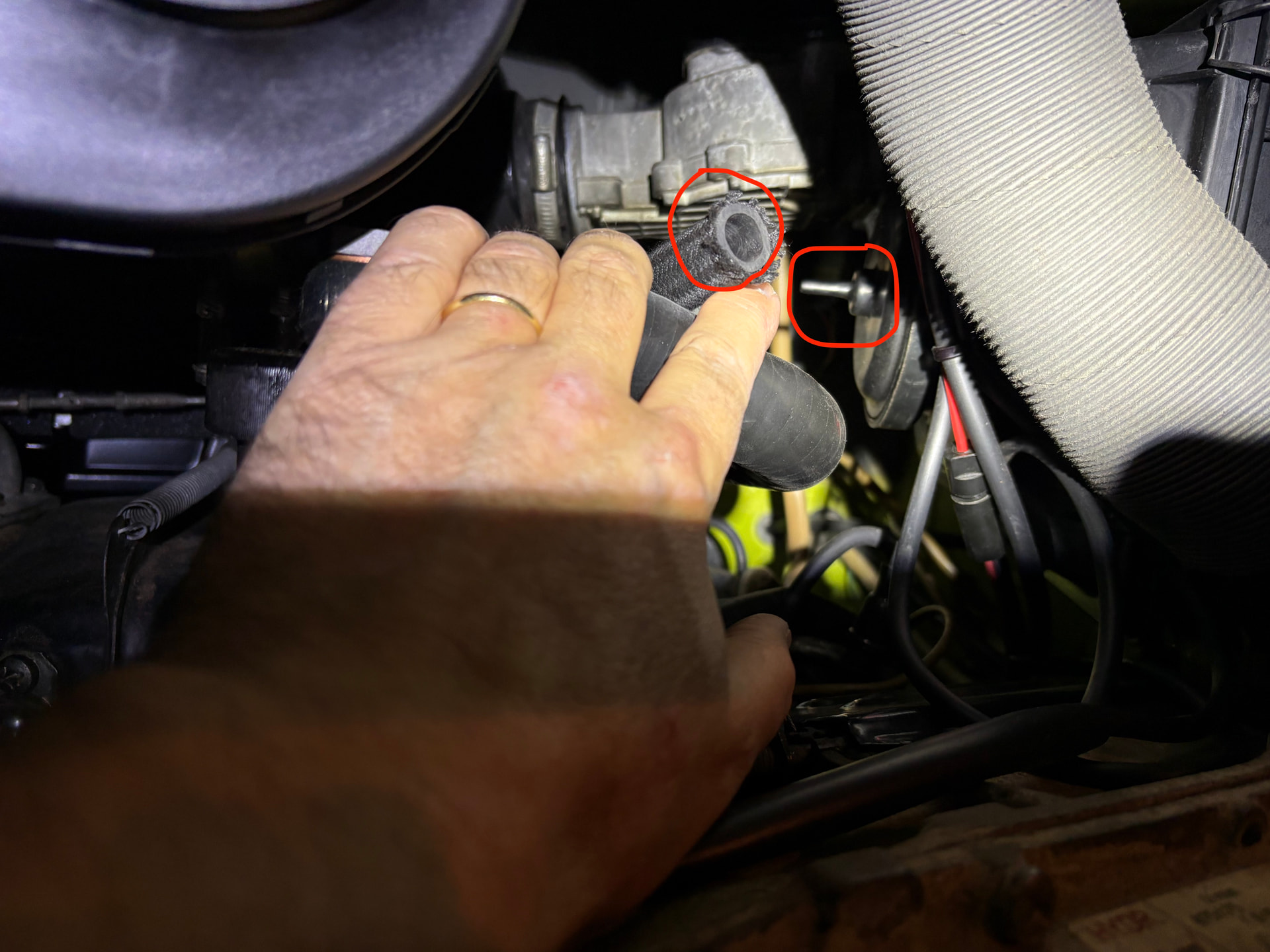 de la durite débranchée côté moteur (doit-elle aller dans l’embout noir, confère dernière photo d’une boite à air )