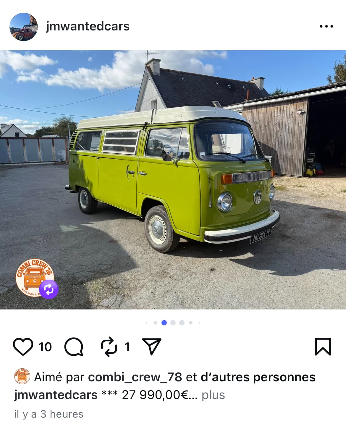 Ce combi est en France et si on te dis qu’il y a beaucoup de personnes en contact mais houhai combien on le cash pour l’acheter à toi te jouer et dans deux mois il est dans les stocks….