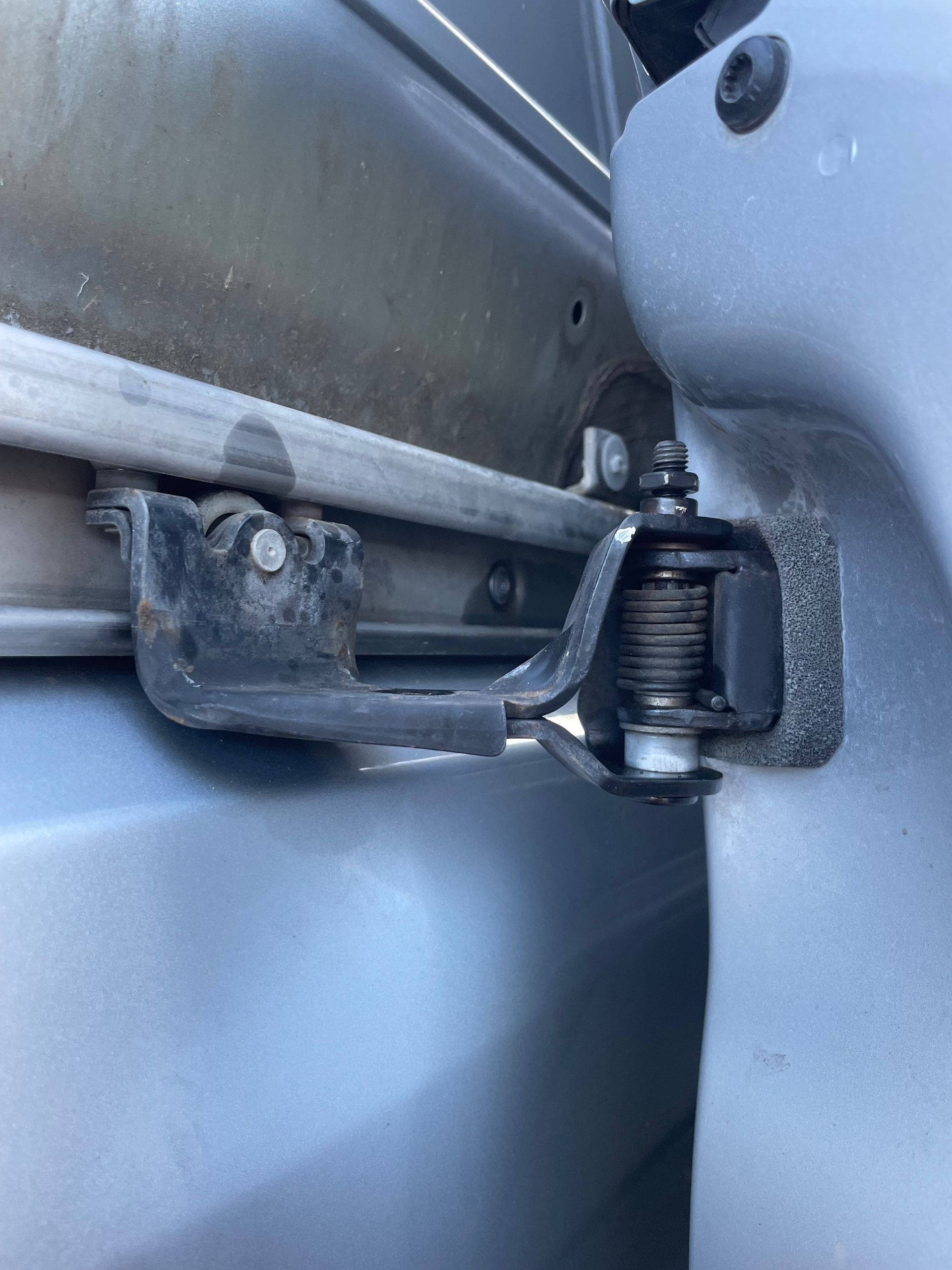 On m’a donné une potentielle solution sur un autre forum (je n’ai pas encore essayé), je vais la laisser ici dans le cas où quelqu’un se trouverait dans le même cas de figure que moi : « Il y a deux vis pour la charnière arrière à l’intérieur de la porte. Ouvrez légèrement la porte et demandez à quelqu’un de la maintenir pendant que vous desserrez ces deux vis, puis réglez-la. Serrez les deux vis dans cette position, puis réglez le loquet/la serrure. »