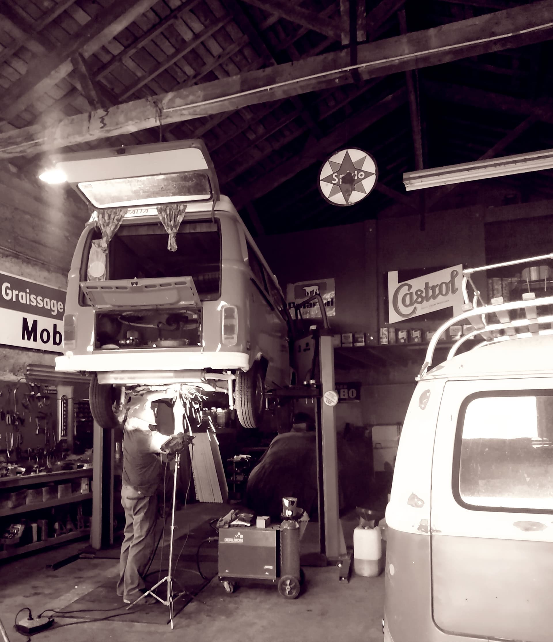 Cette pièce manquante barrée en rouge aurait elle, à l’origine, un rapport avec le filtre à air à bain d’huile? (A l’origine en injection, le bus a été passé en carbu avec les filtres à air au dessus)