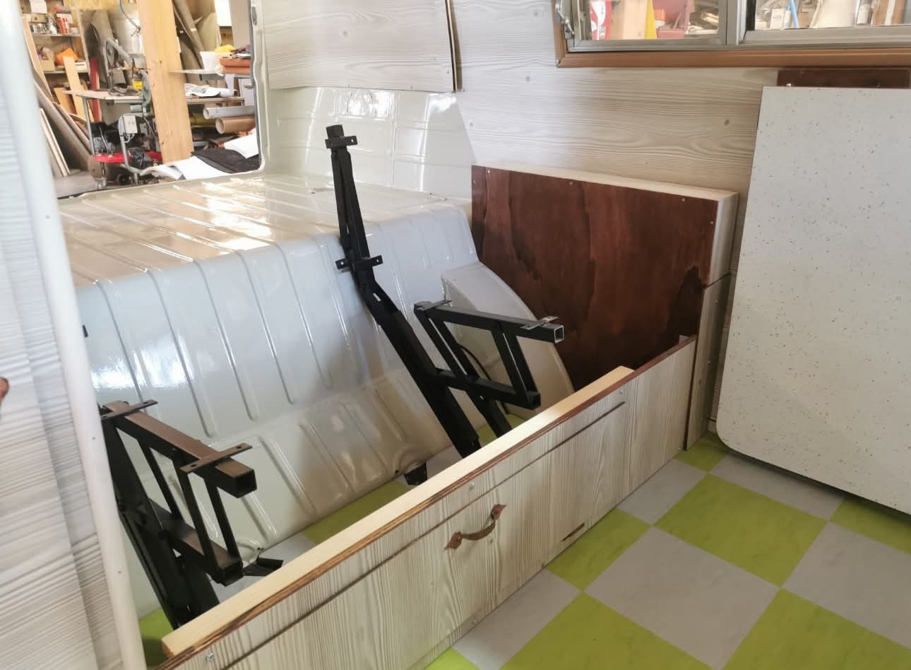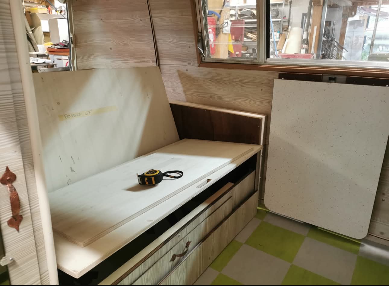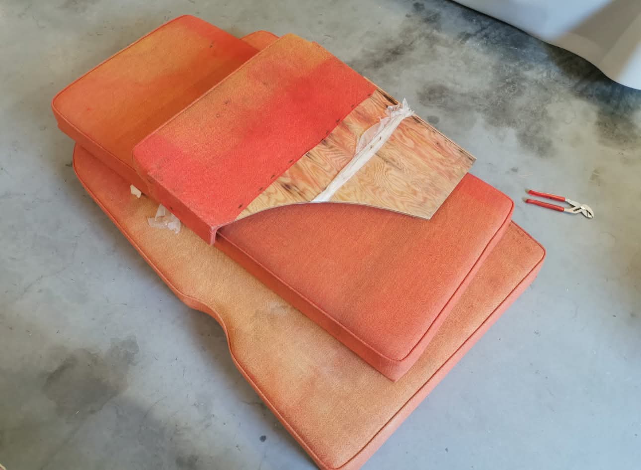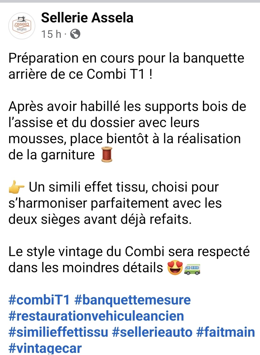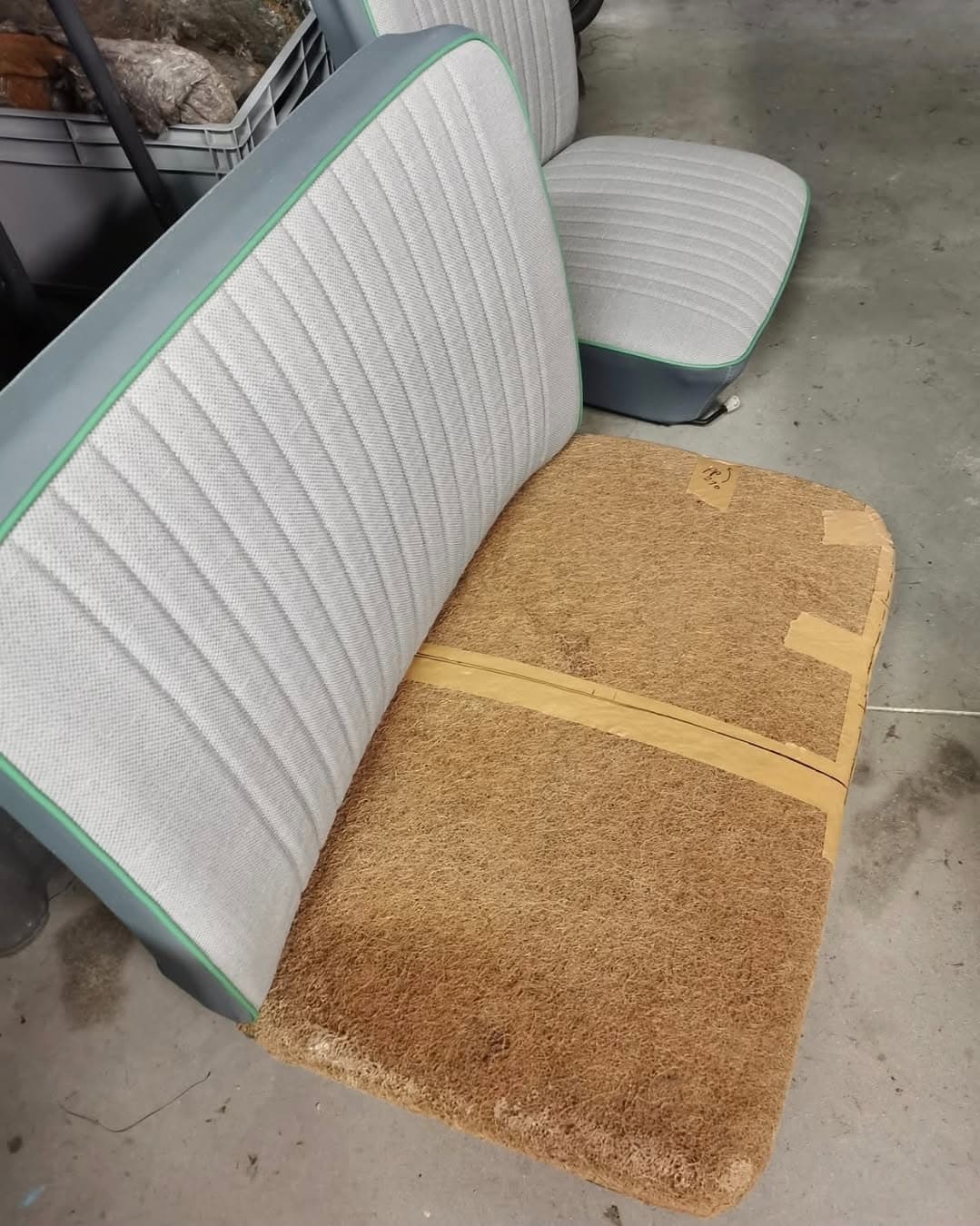Avec détail de la réfection de la banquette avant :