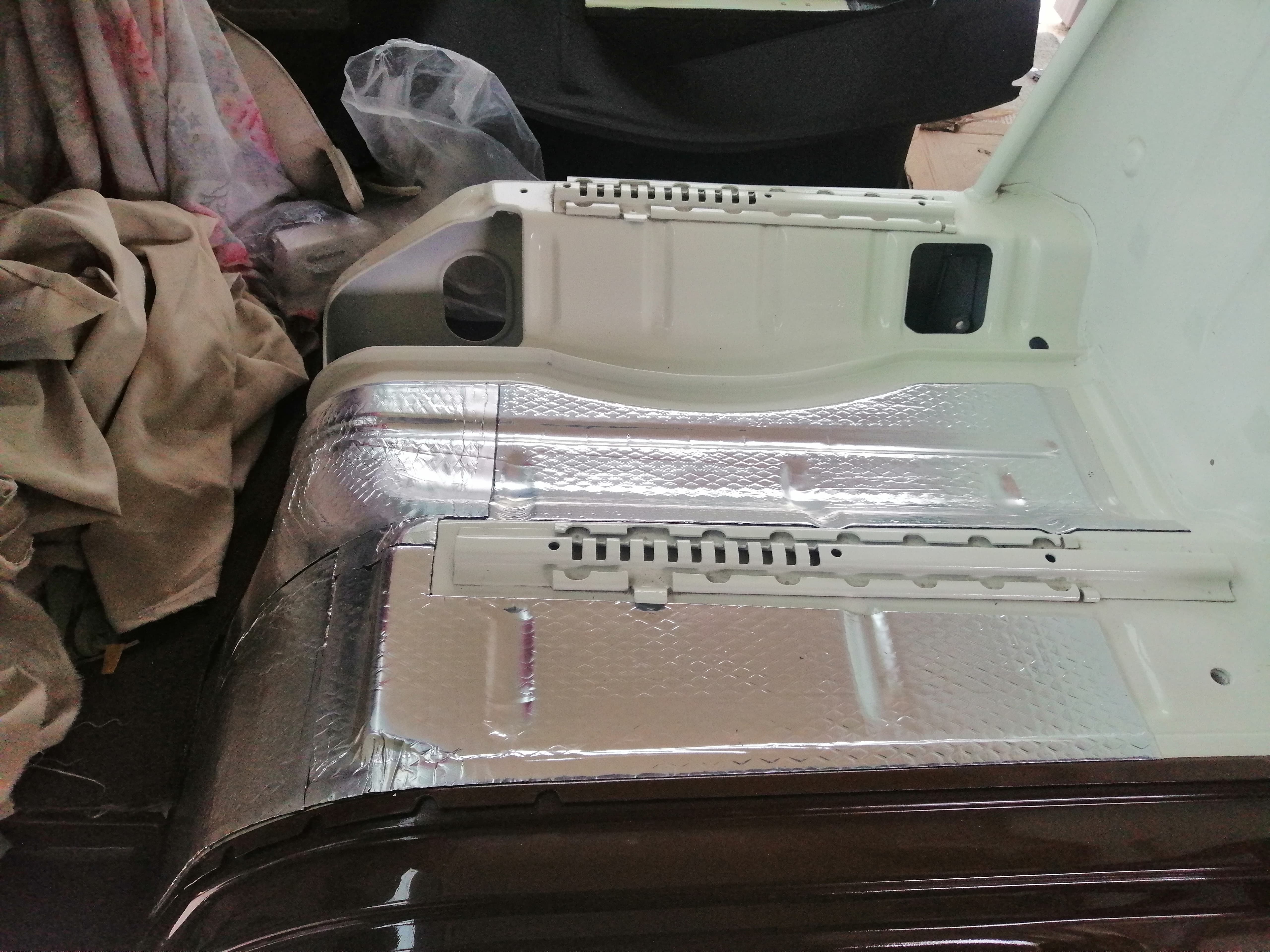 Je me attaqué aux passages de roue avant, avec comme toujours un isolant phonique.