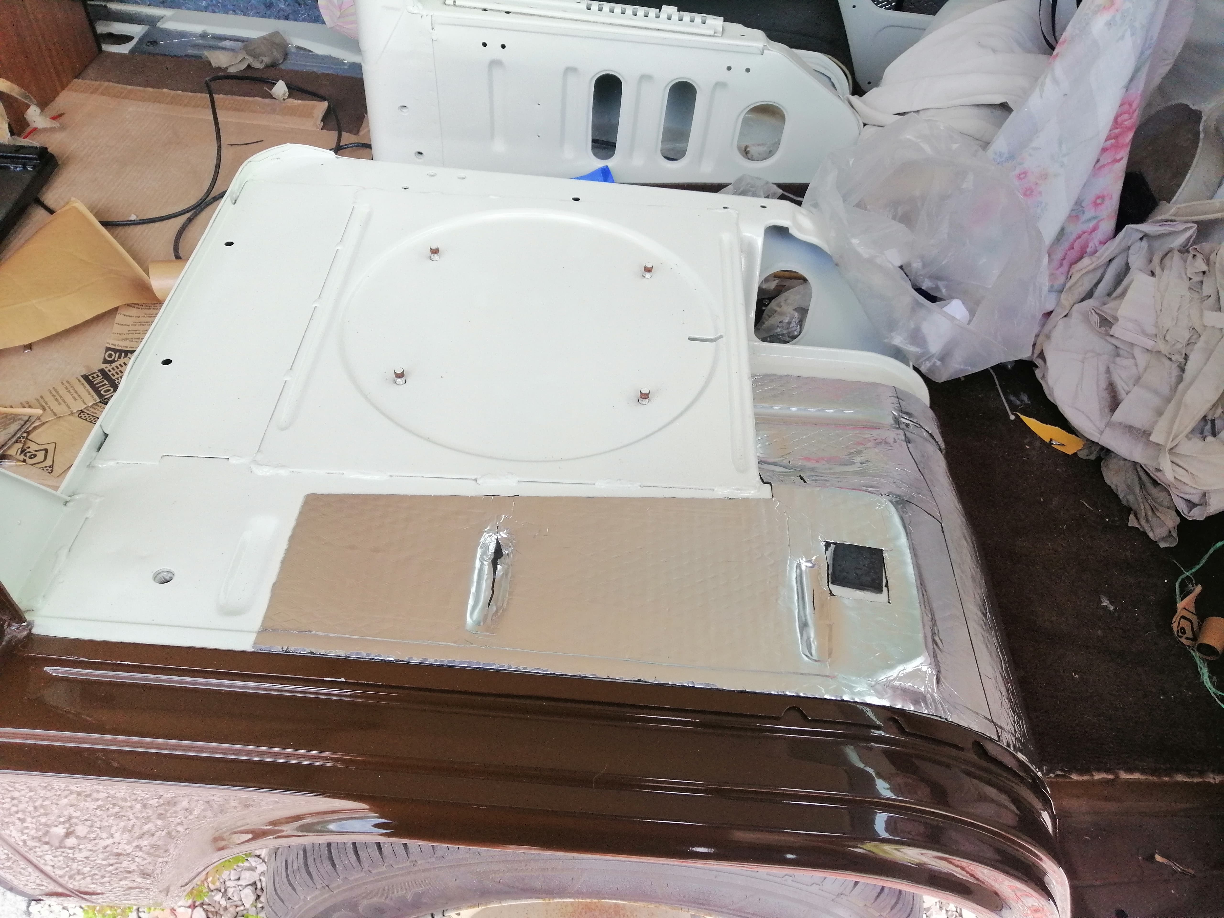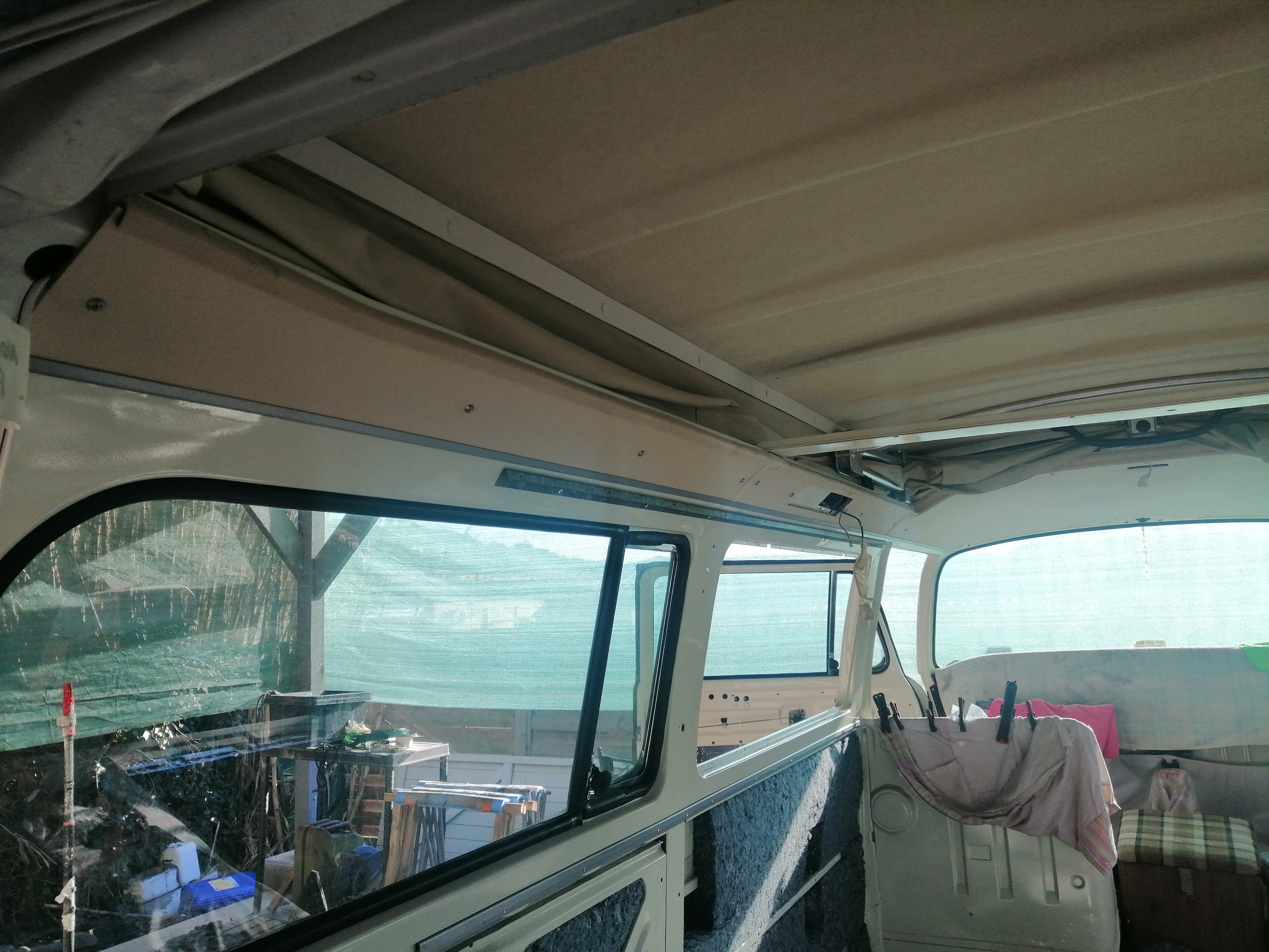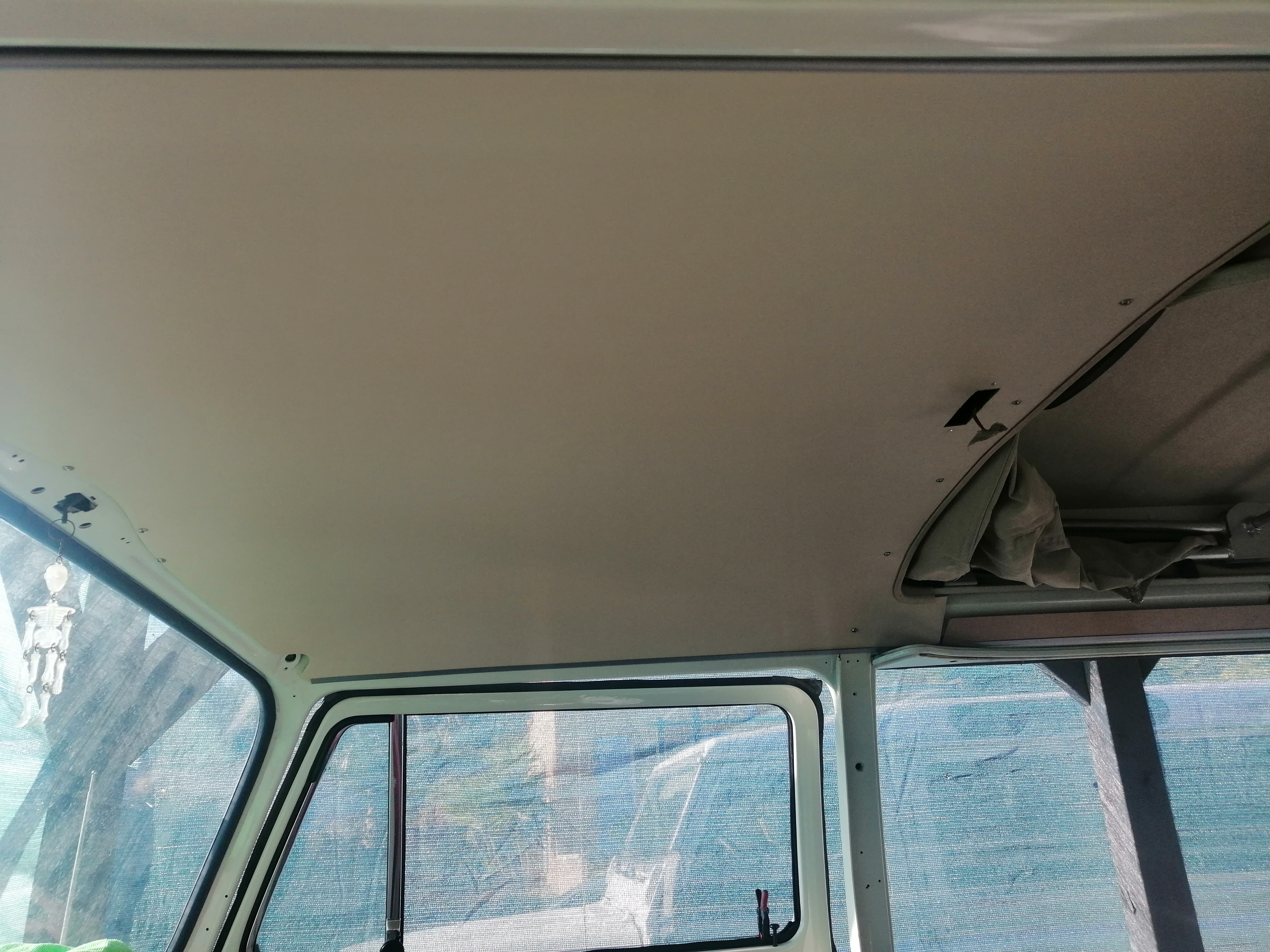 Ce week-end j’ai fini les 2 panneaux du ciel de toit westfalia côté passager, j’ai remis également le cache du rail de la porte coulissante.