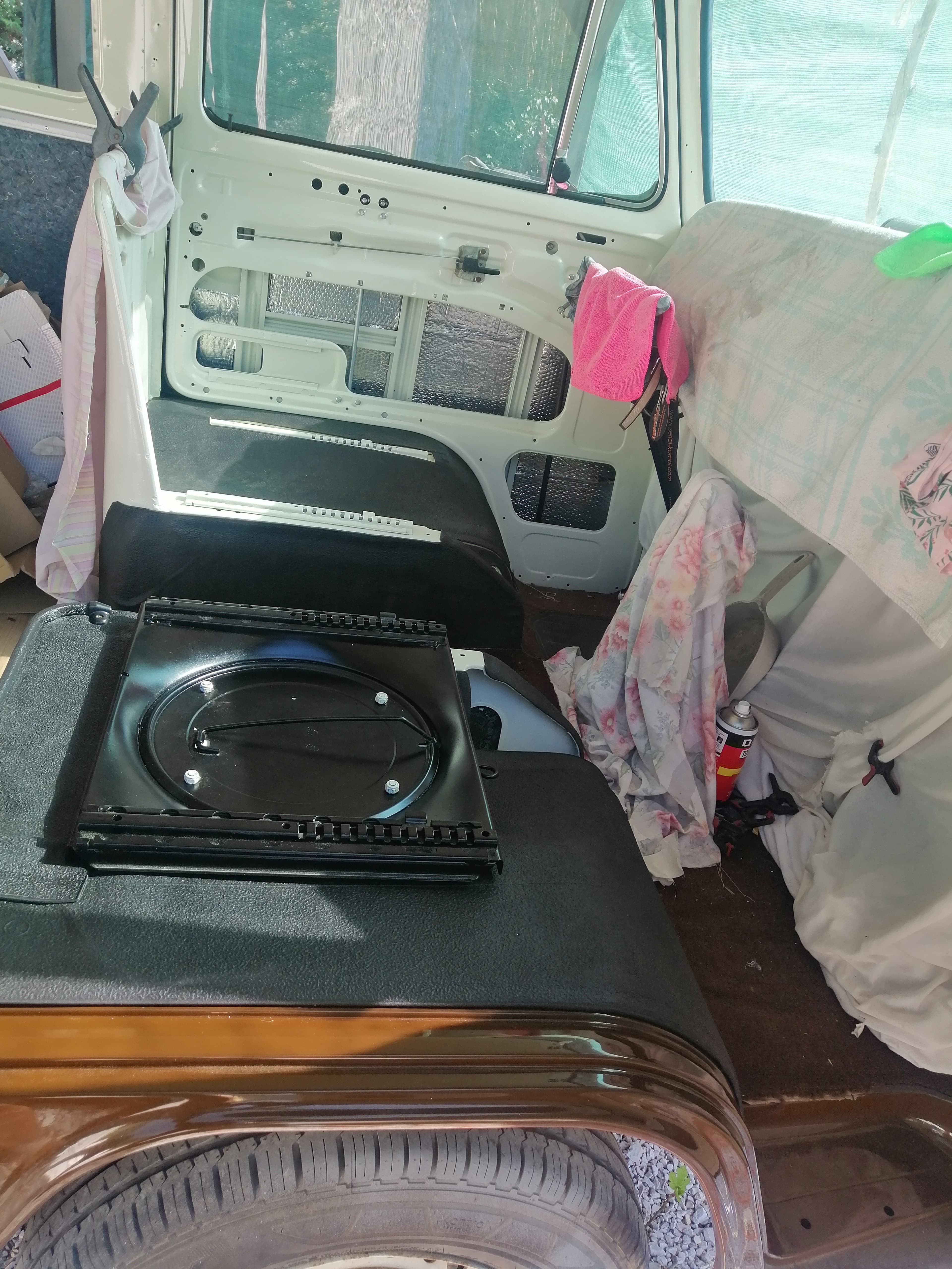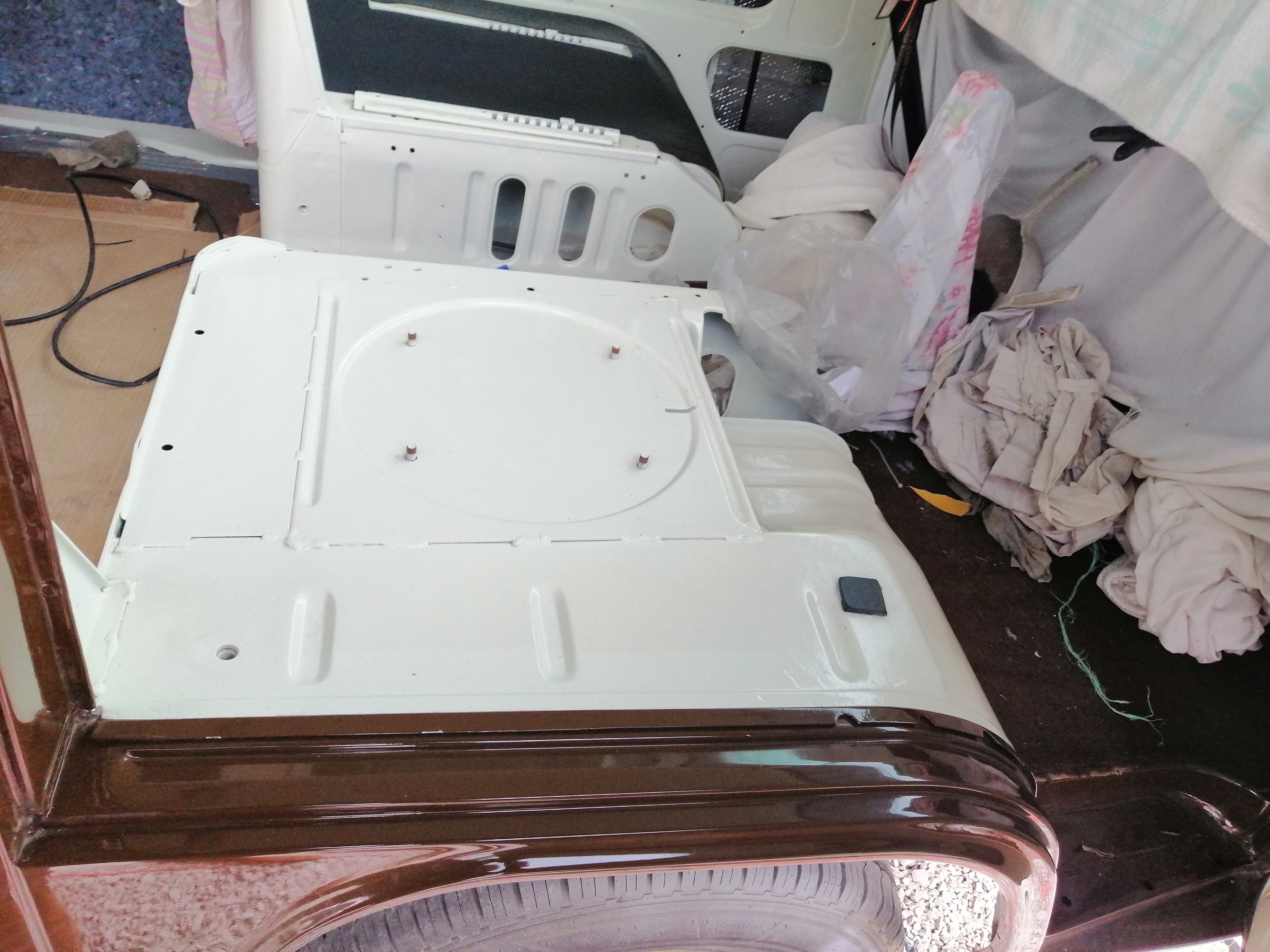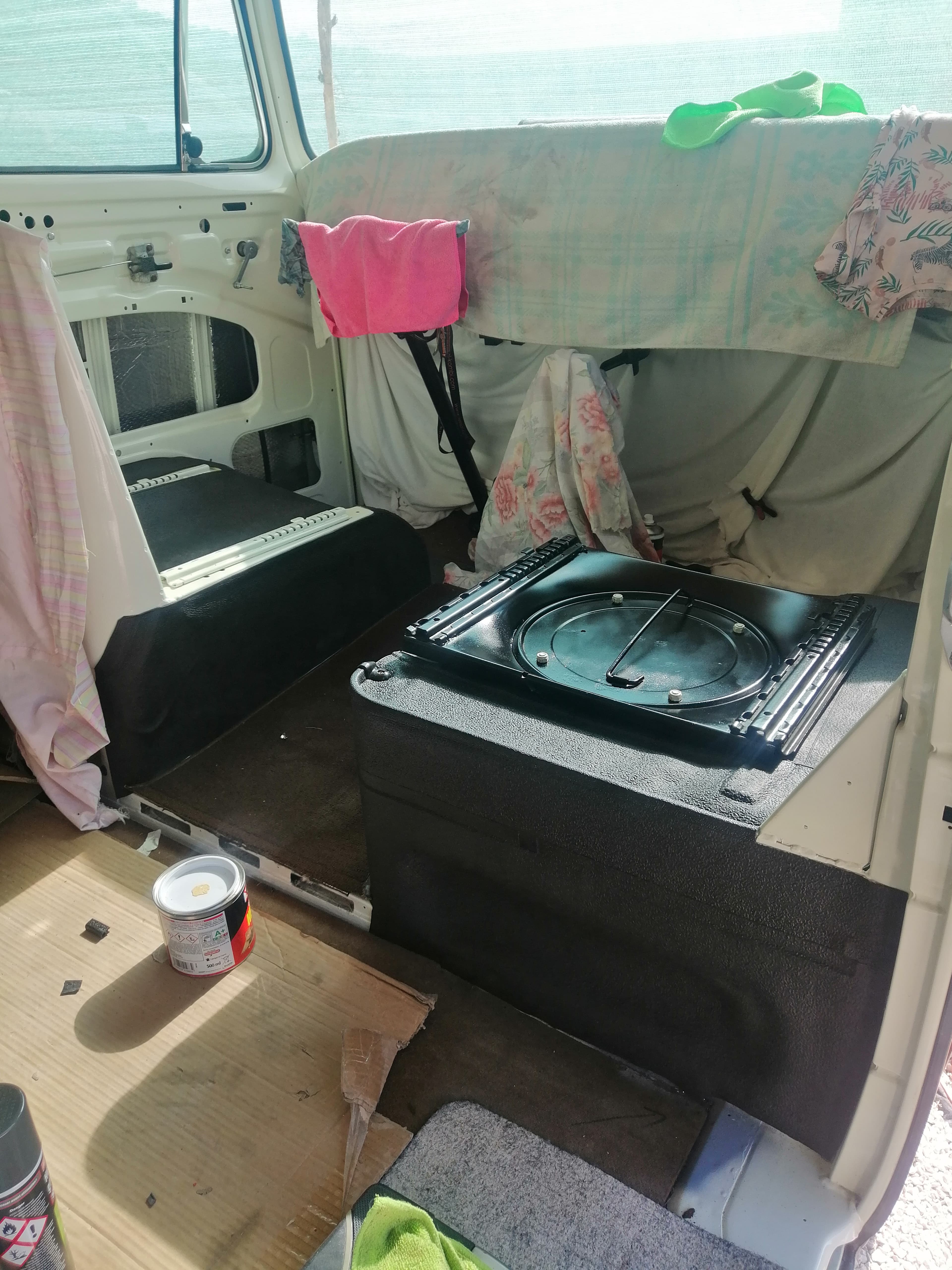 Ce week-end j’ai fini les 2 panneaux du ciel de toit westfalia côté passager, j’ai remis également le cache du rail de la porte coulissante.