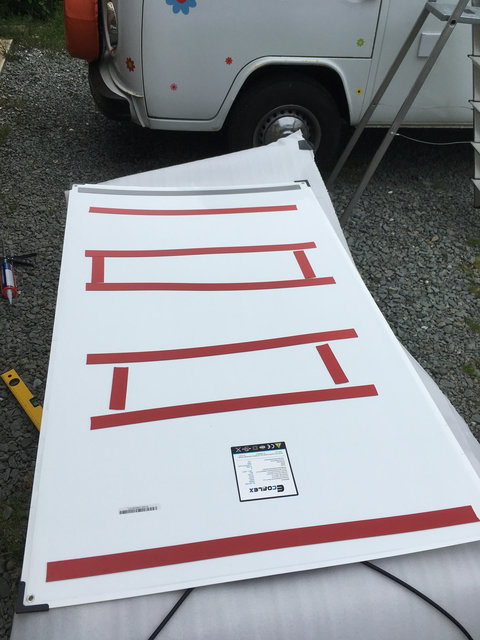 Le frigo trimix d’origine sera remplacé par un frigo à compression (Waeco CRX50), et un panneau solaire de 120W sera collé sur le toit pour la recharge. Le but est de se passer du 220V au maximum !