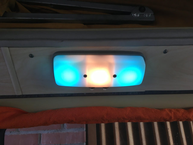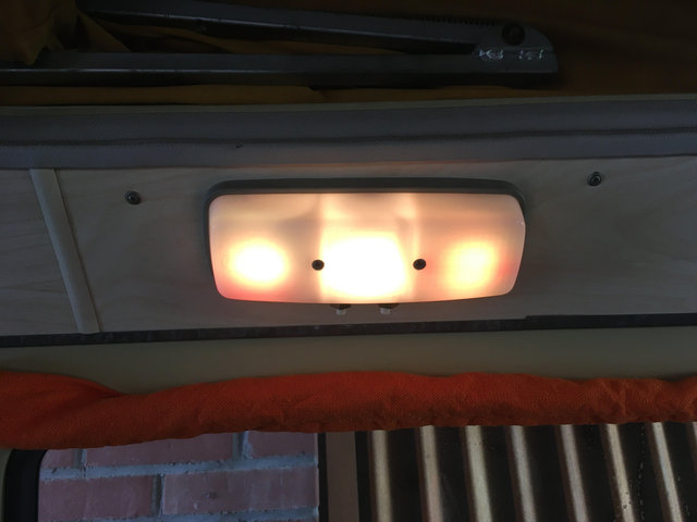 Trop compliqué d’ajouter de l’éclairage par contre, je garde celui d’origine qui prend sur la batterie de démarrage, et je rechargerai des spots portatifs sur les prises USB.