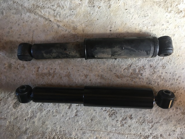 Et ce soir, j’ai attaqué le remplacement des amortos. J’ai commencé par l’arrière, le premier n’a pas posé de problème, j’avais mis du dégrippant il y a 3-4 jours, les vis sont bien sorties. Remontage en comprimant légèrement le demi-train.
