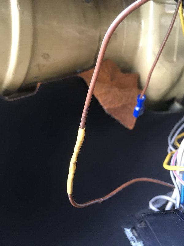 Un fil « blessé » sur lequel venait se repiquer la pompe de l’évier. On passe une gaine thermo et on isole, même si le « trou » reste visible