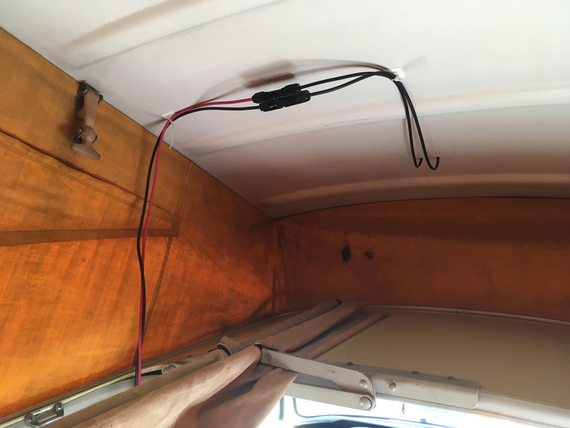 Le panneau sur le toit, tout n’est pas magnifiquement centré, mais ça ira, pas si simple avec la relative rigidité des câbles :