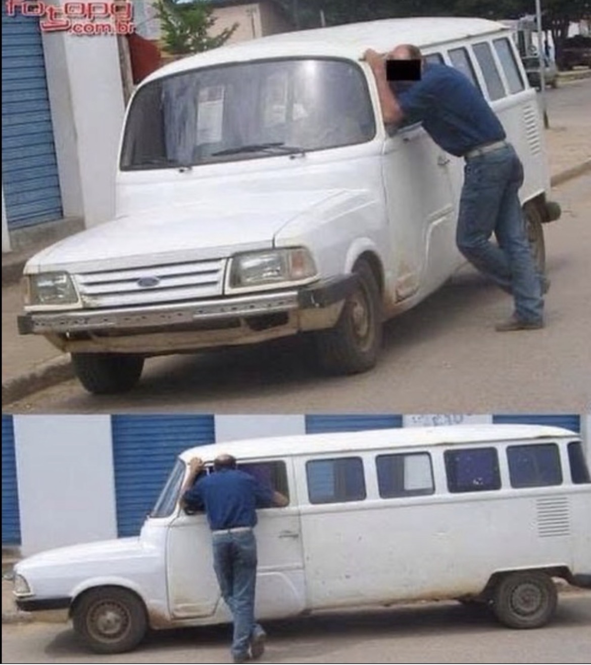 Je pense que le combi a avalé la voiture en stationnement!!! si si, c’est déjà arrivé!!