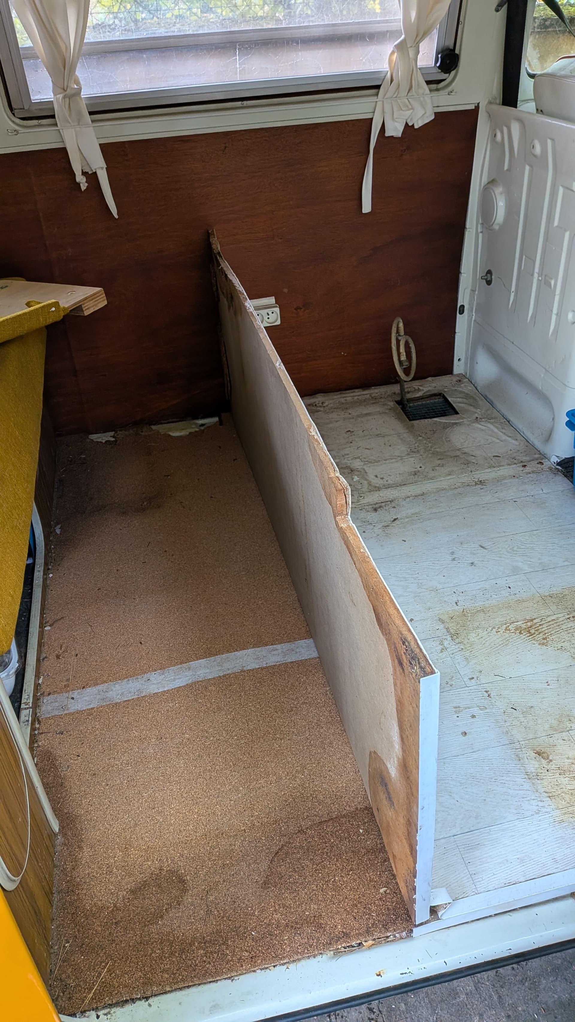 J’ai démonté les meubles a l’intérieur pour pourvoir lever le plancher pour pouvoir viser le chauffage.
