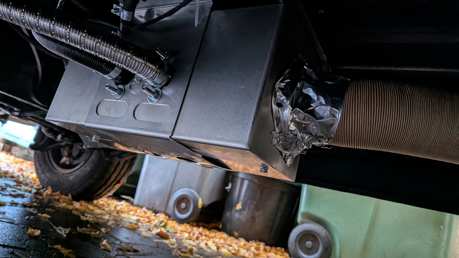 Pour le moment je ne prend pas l’air à réchauffer à l’intérieur comme cela est conseillé pour éviter d aspirer des saletés. Il faut que je rajoute un bout de gaine qui arrivera sous la banquette. Je peux facilement faire ça plus tard.