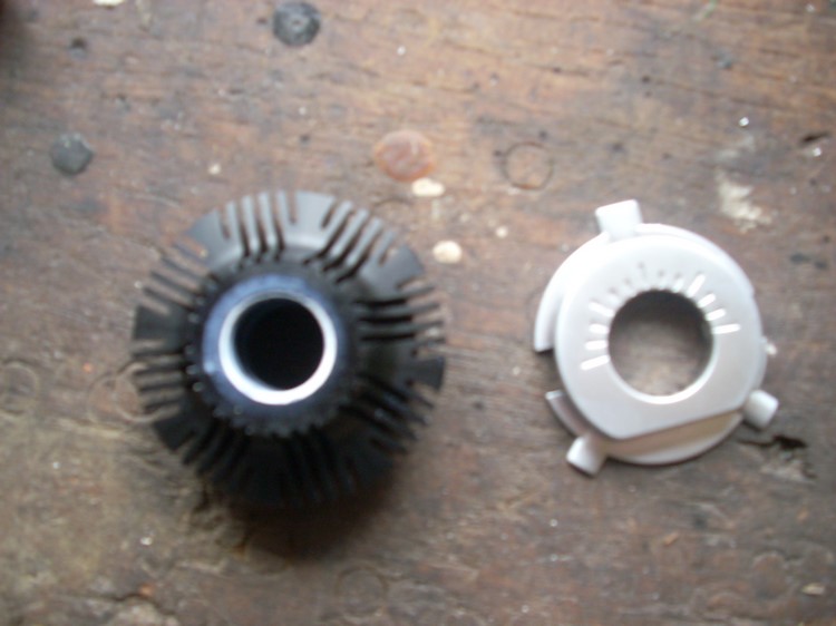 le flasque de la led est ensuite riveté sur celui de la « CE » , attention respectez bien le sens de montage de l’ampoule :