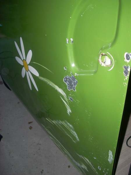 ça peut être une solution en attendant les réparations, une grosse marguerite comme de toute façon il y aura du travail de ponçage
