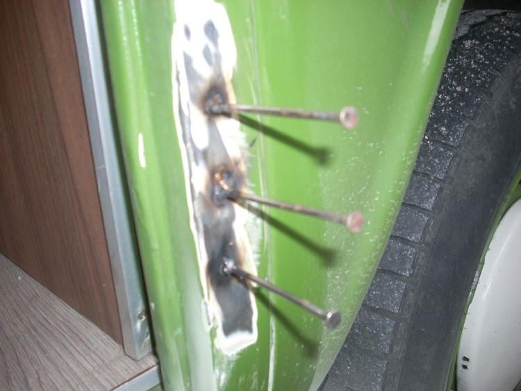 Les réparation de la porte ont bien avancées , il a fallut tirer la tôle là où on ne peut pas la pousser :