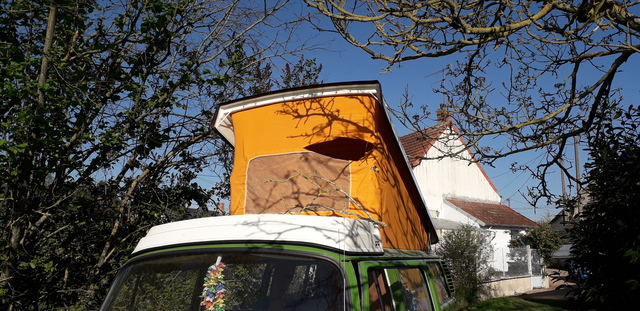 Ça me rappelle une mésaventure,je modifiais un pop out en safari latérale devant le garage. j’avais presque fini, ouvert à l’horizontal. zut, il commence à pleuvoir, vite, rentrons le bus au sec… boum ? Oups ![]()